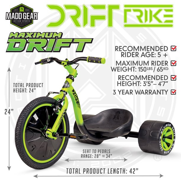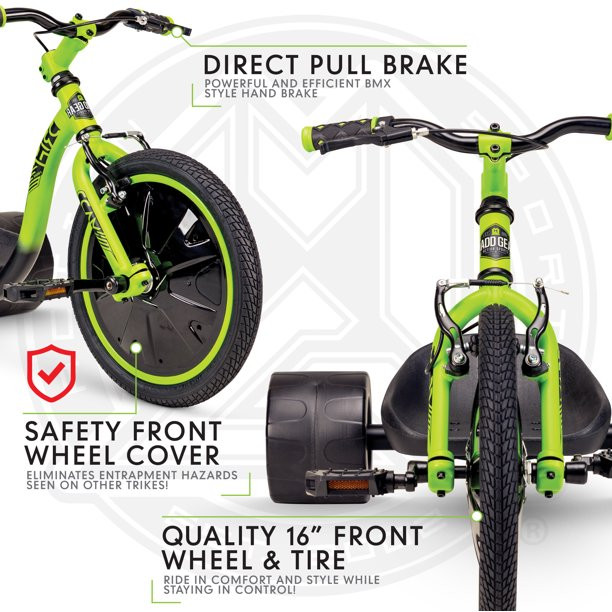 Madd Gear 16″ Mini Drift Trike. Steel Frame Tricycle. Ages 5 and up. Green