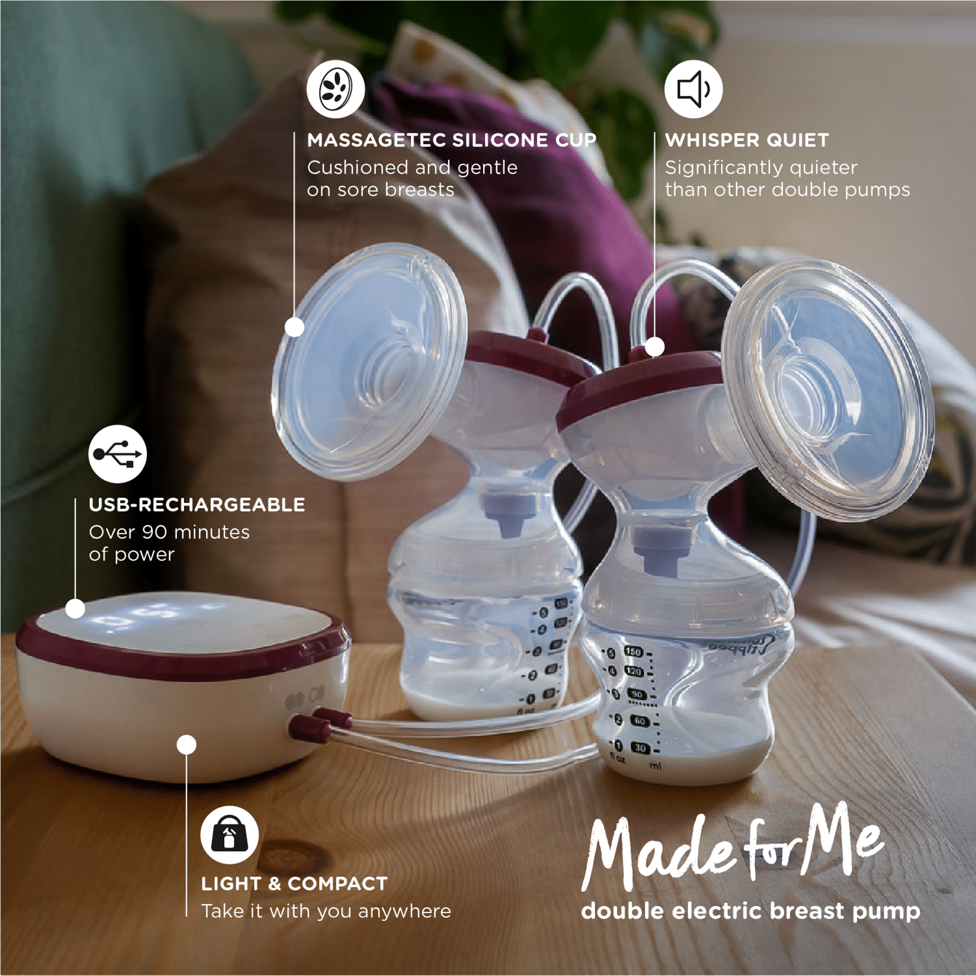 Tommee Tippee Made for Me Double Electric Breast Pump. USB Rechargeable