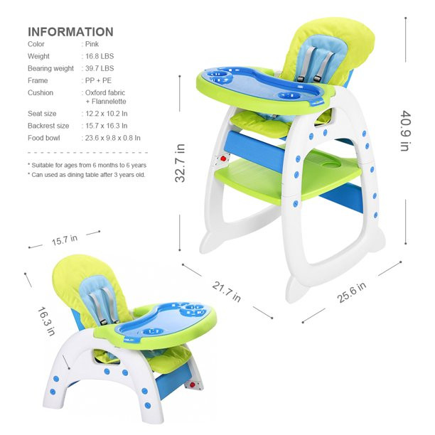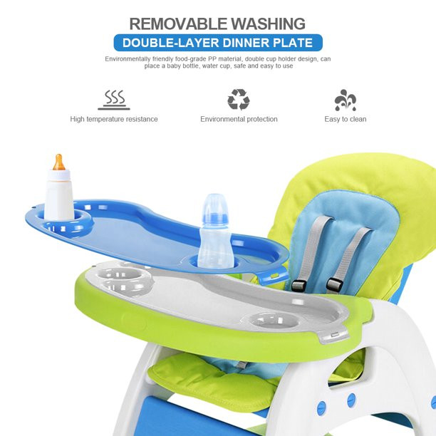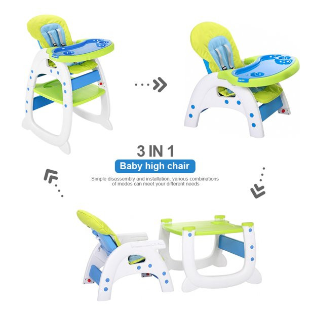 Hommoo 3 In 1 Baby High Chair. Convertible Play Table And Chair Set For Toddler. Adjustable Seat Back. Blue