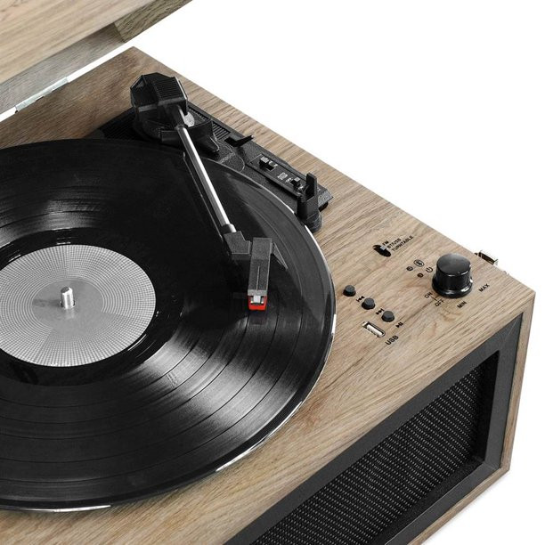 Victrola Bluetooth Record Player Stand with 3-Speed Turntable. Farmhouse Oatmeal