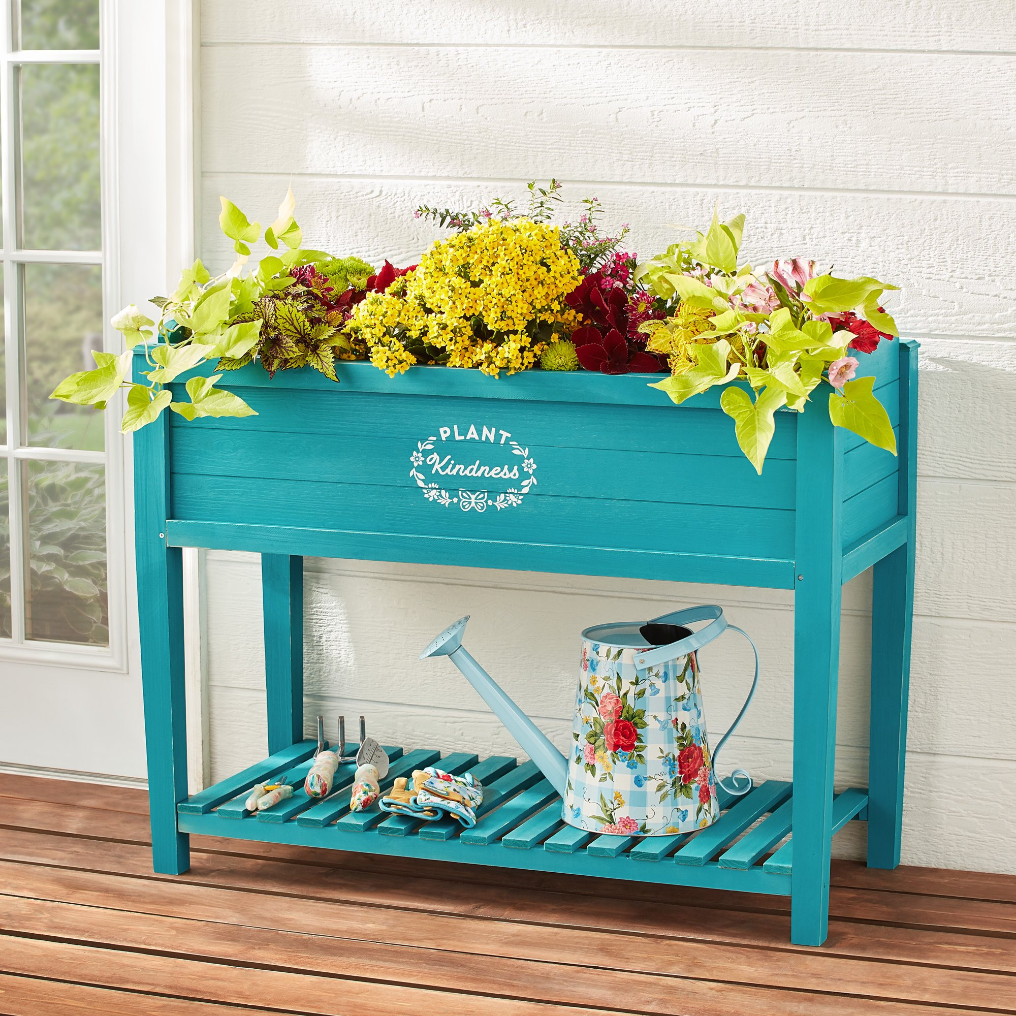 The Pioneer Woman Blue Wood Raised Garden Bed. 40.2″ L x 18.2″ W x 32″ H