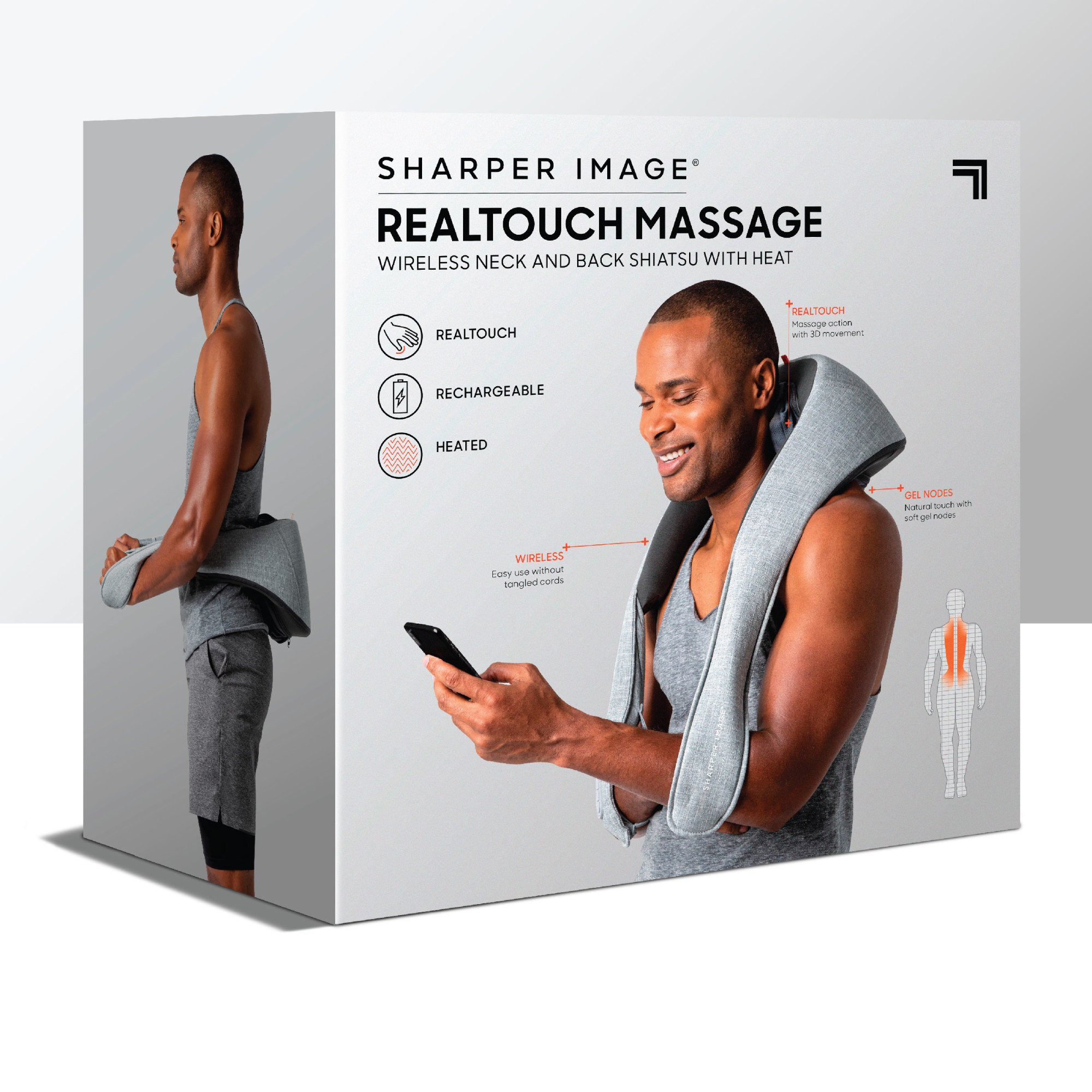 Sharper Image Realtouch Shiatsu Massager. Wireless & Rechargeable. Best Massager for Neck Back Shoulders Feet Legs w/ 6 Massage Heads