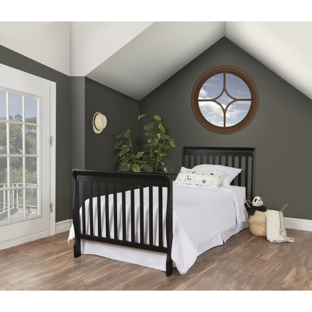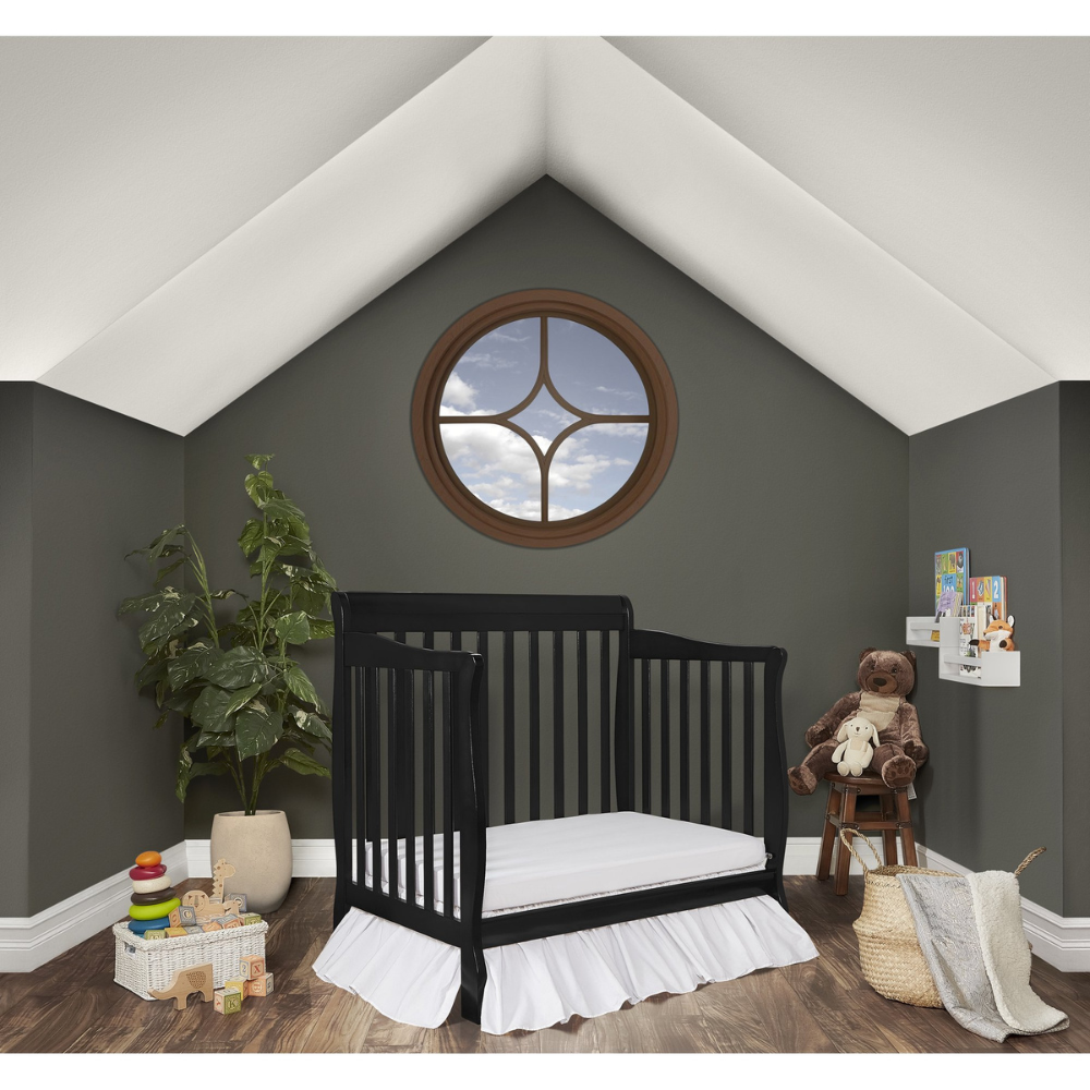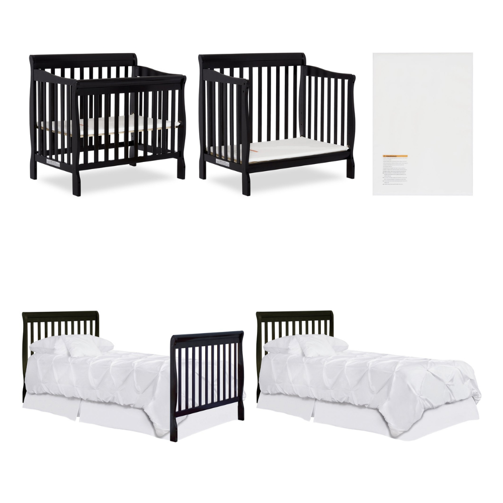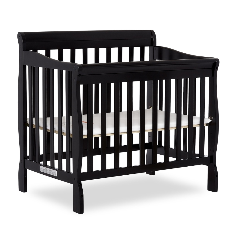 Dream On Me Aden 4-in-1 Convertible Mini Crib In Black. Greenguard Gold Certified