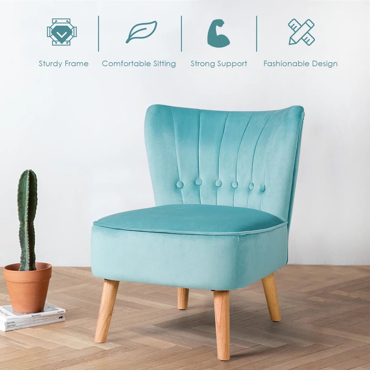 Costway Armless Accent Chair Tufted Velvet Leisure Chair Single Sofa Upholstered. Green