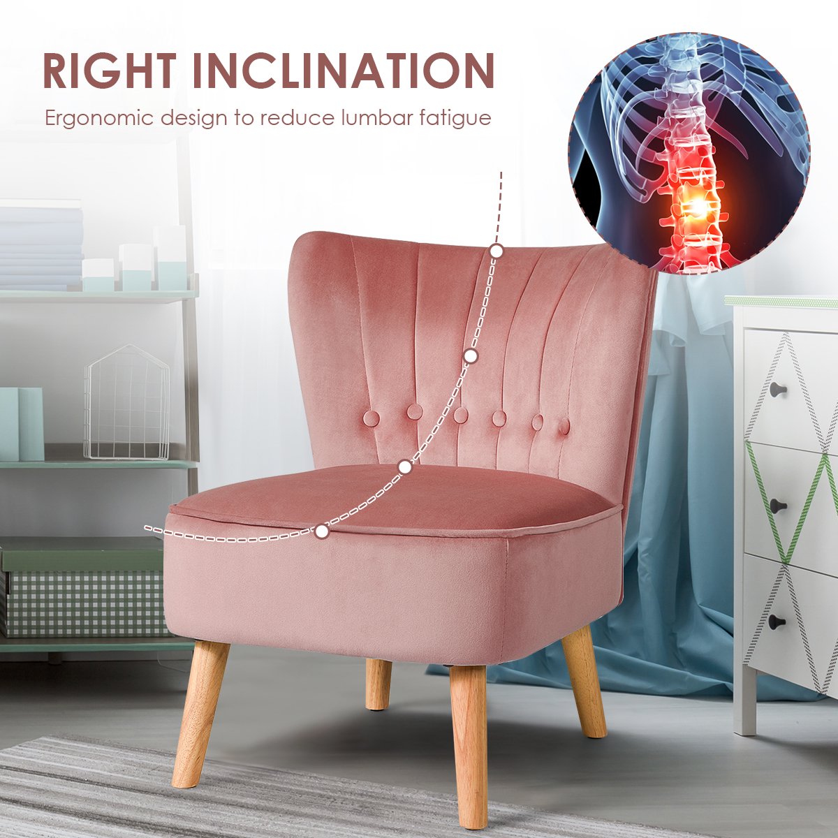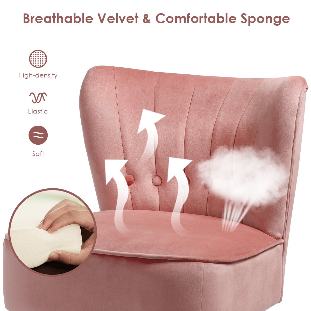 Costway Armless Accent Chair Tufted Velvet Leisure Chair Single Sofa Upholstered. Pink