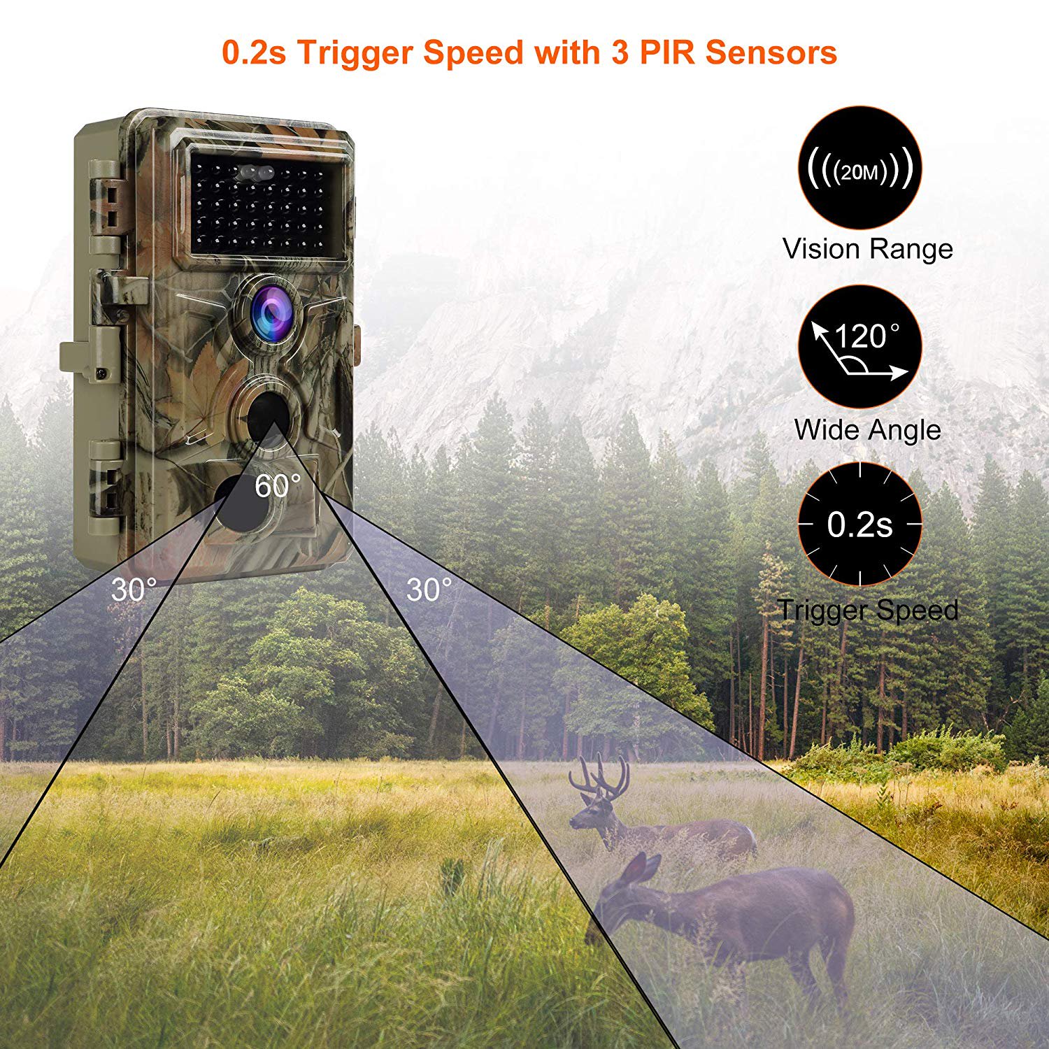 BlazeVideo 2-Pack Trail Game Deer Cameras No Glow 20MP 1080P H.264 MP4 Video