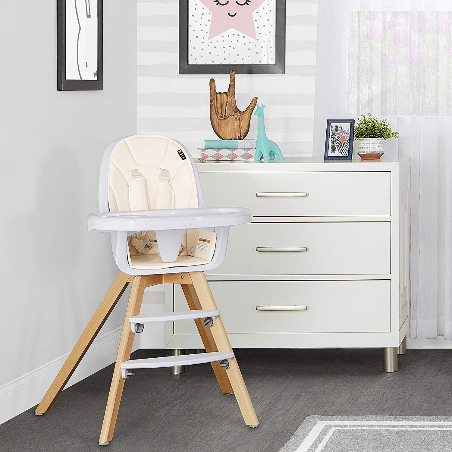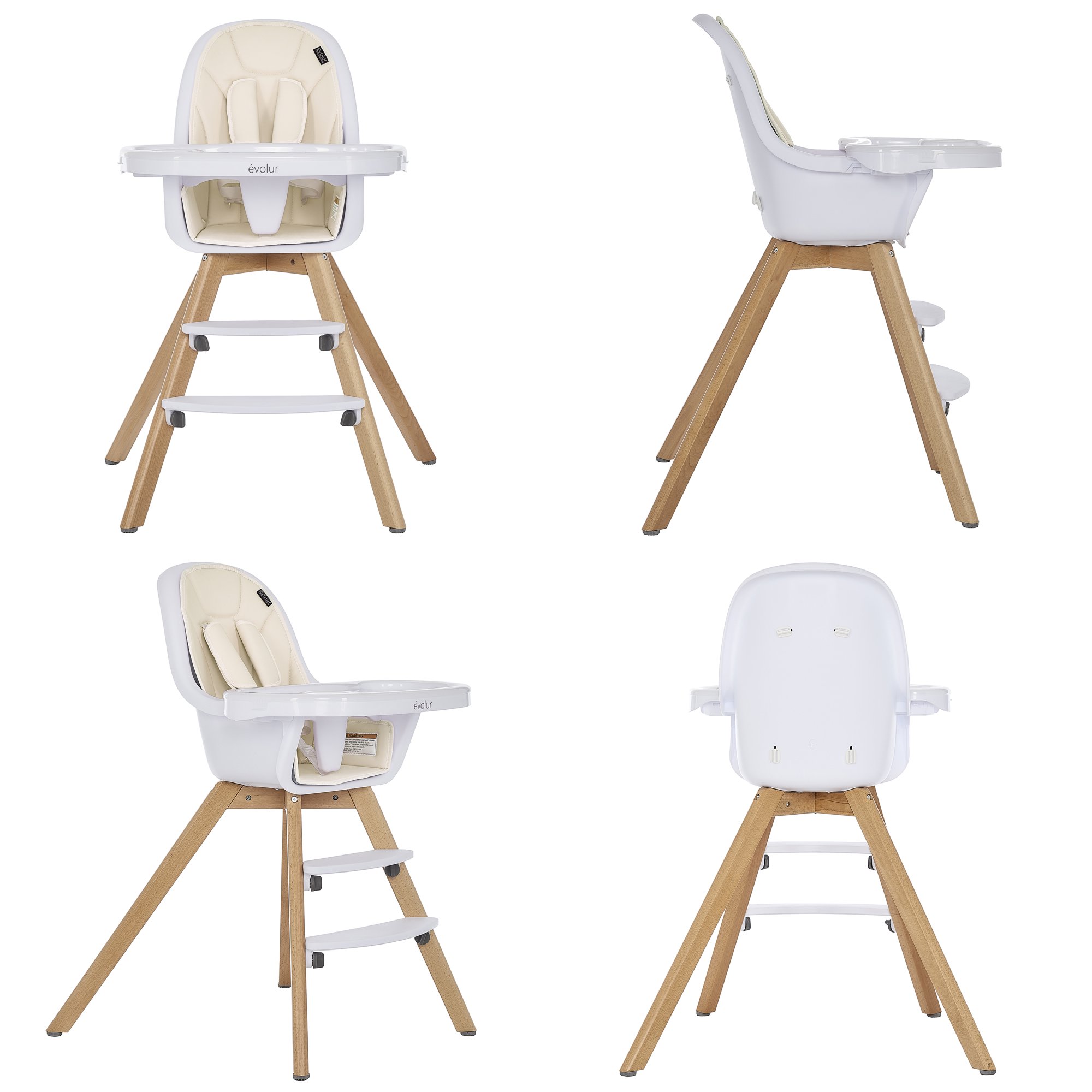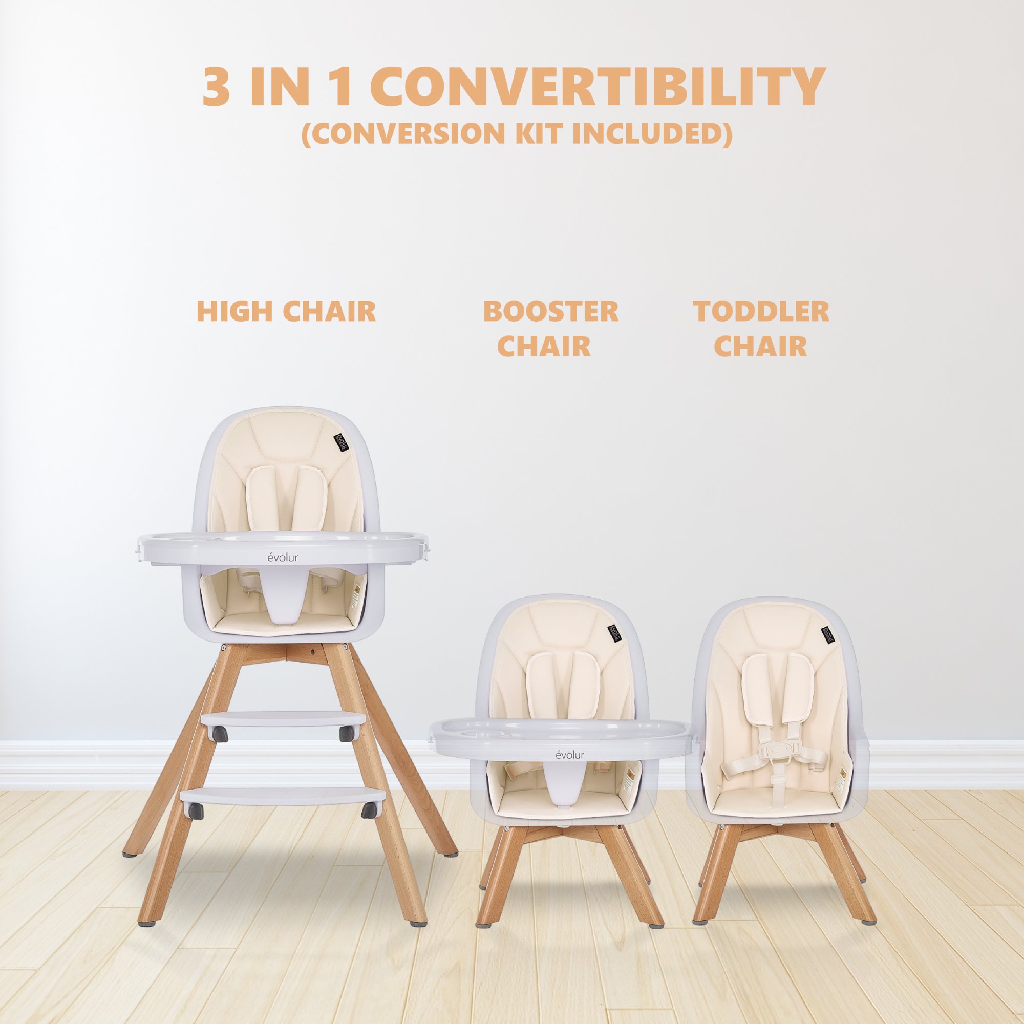 Evolur Zoodle 3-in-1 High Chair Booster Feeding Chair with Modern Design. Ivory