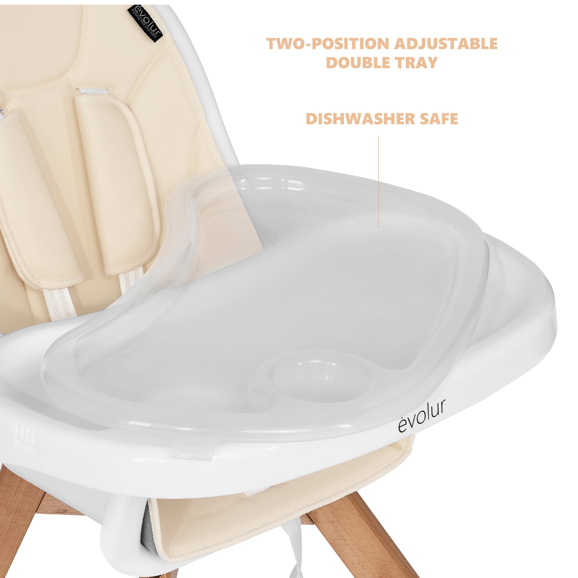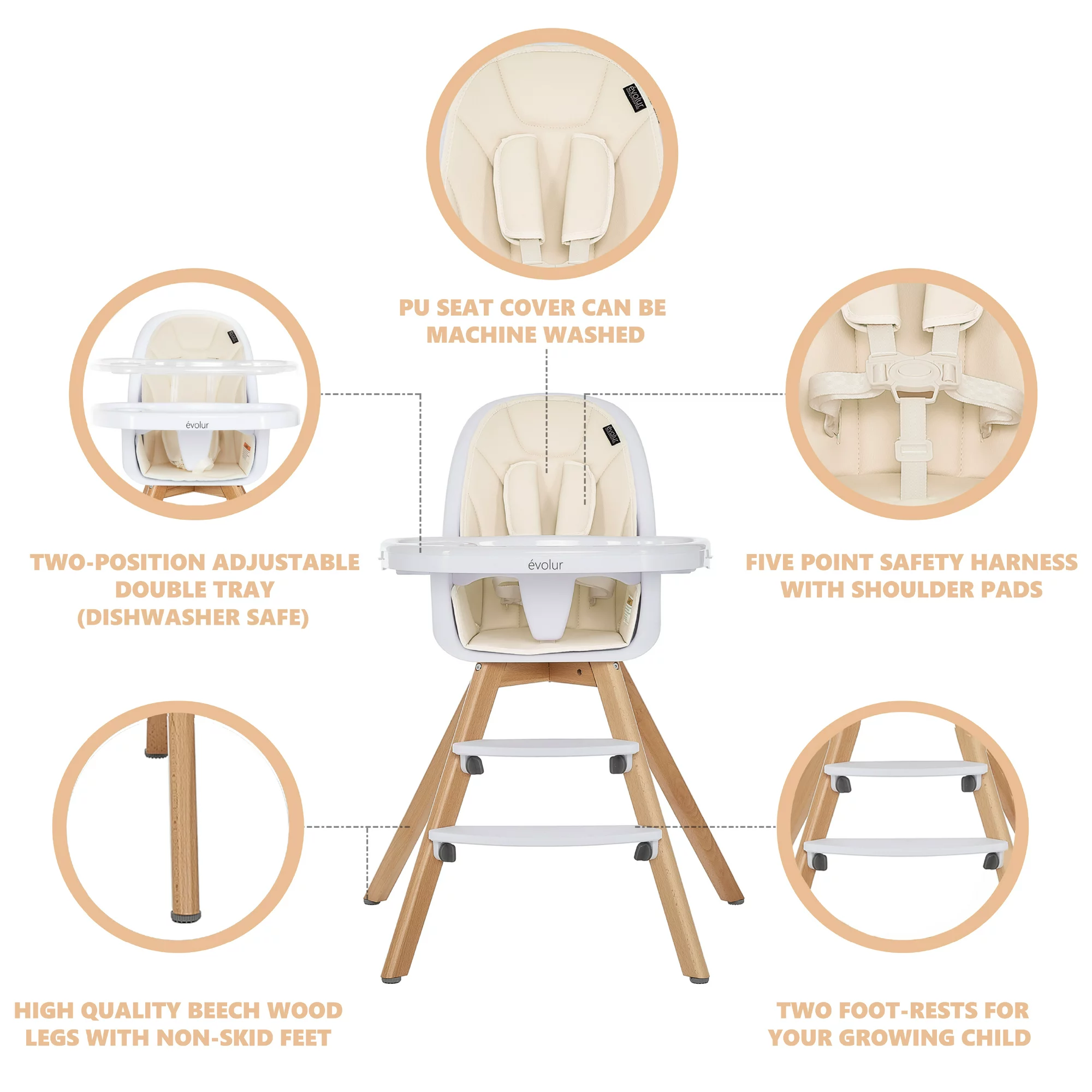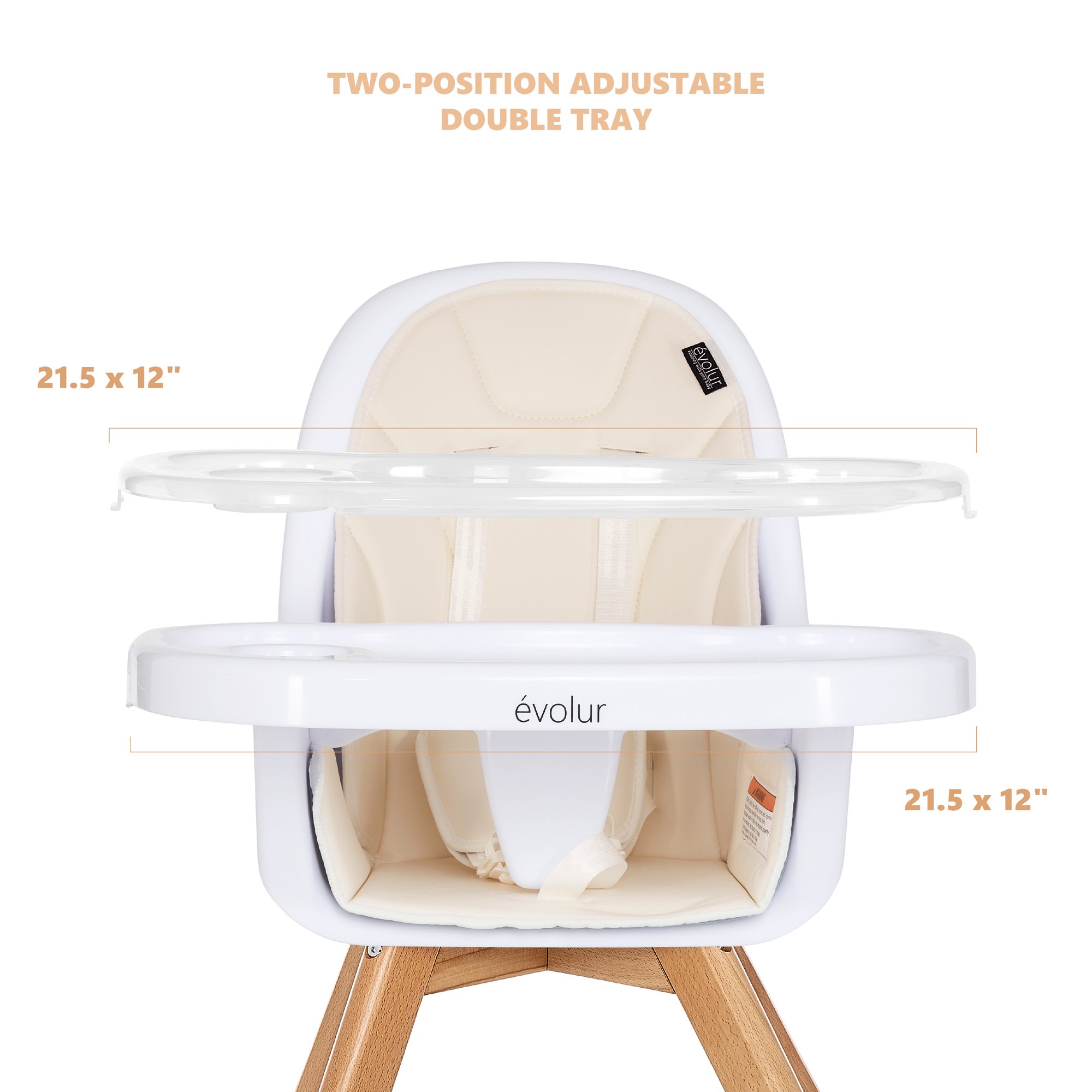 Evolur Zoodle 3-in-1 High Chair Booster Feeding Chair with Modern Design. Ivory
