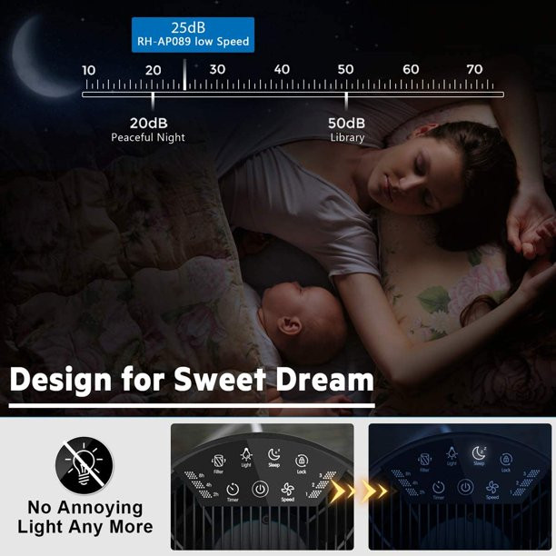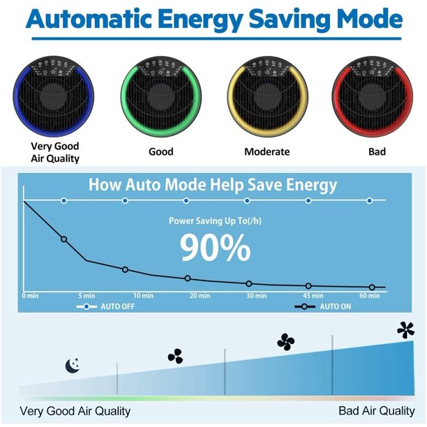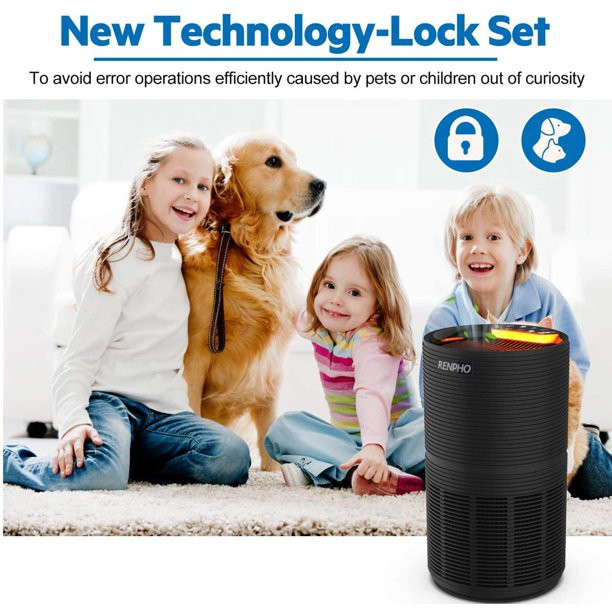 Renpho Air Purifier Smart Filter Change Reminder Home Large Room 480 Sq.ft. HEPA Filter Air Purifier. Black