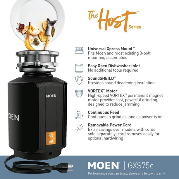 Moen Host Series Garbage Disposal With Sound Reduction. GXS75C