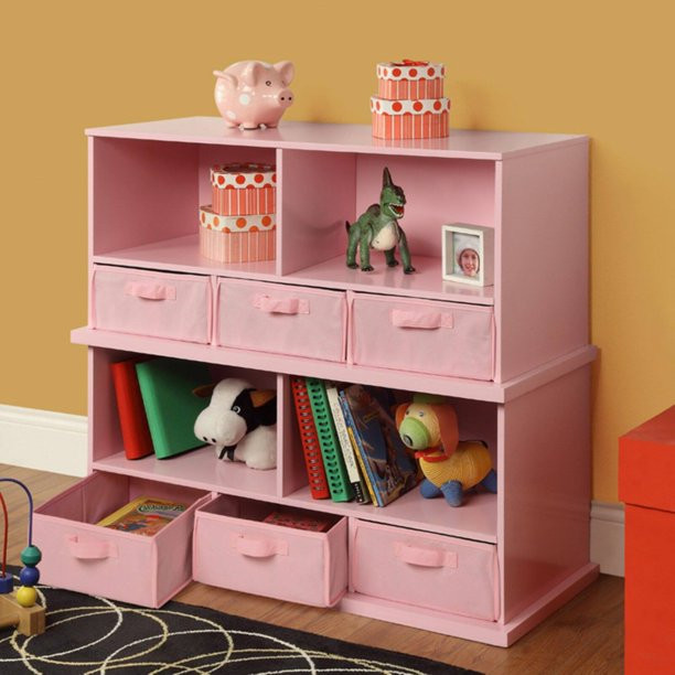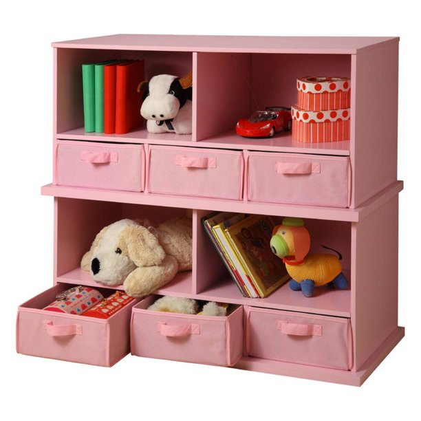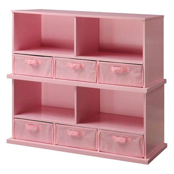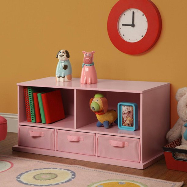 Badger Basket Children Wood and Fabric Storage Cube with 3 Baskets. Pink