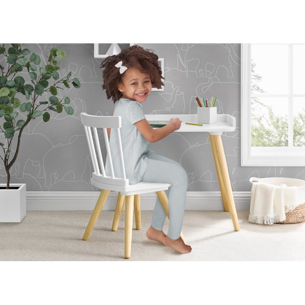 Delta Children Essex Desk & Chair Set. Green Guard Gold Certified. Bianca White/Natural