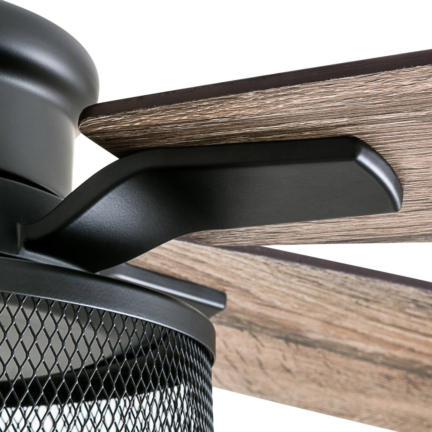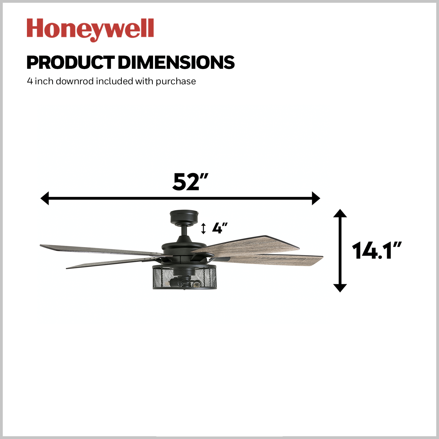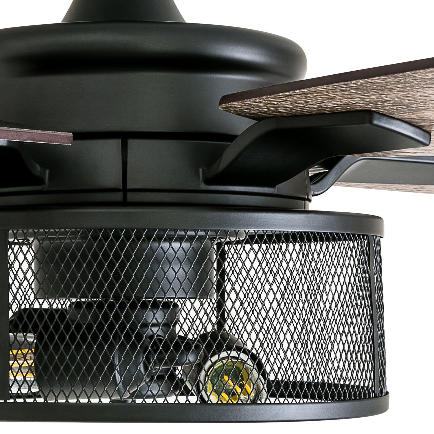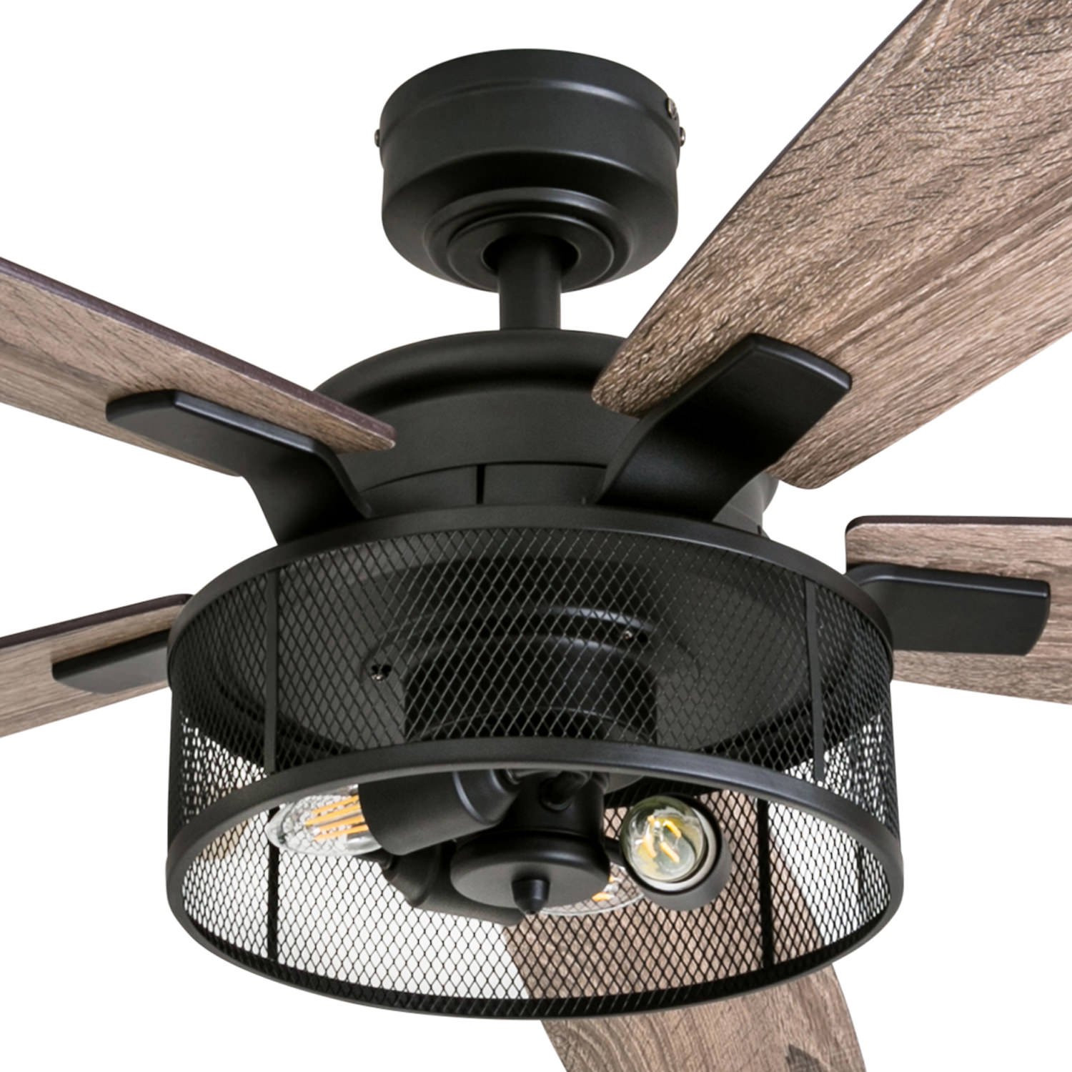 Honeywell Carnegie 52″ Matte Black LED Industrial Ceiling Fan with Remote. Mesh Drum Lighting and Edison Bulbs