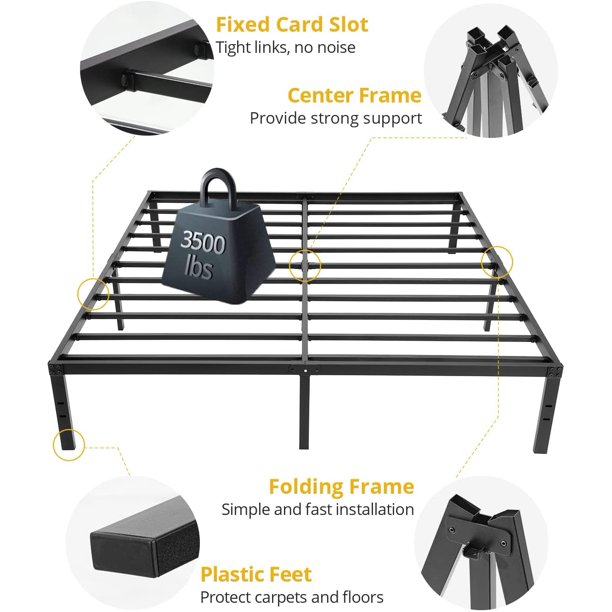 Tatago 16 inch Heavy Duty Queen Bed Frame With Storage. 3500 lbs Max Weight Capacity Metal Platform. Queen