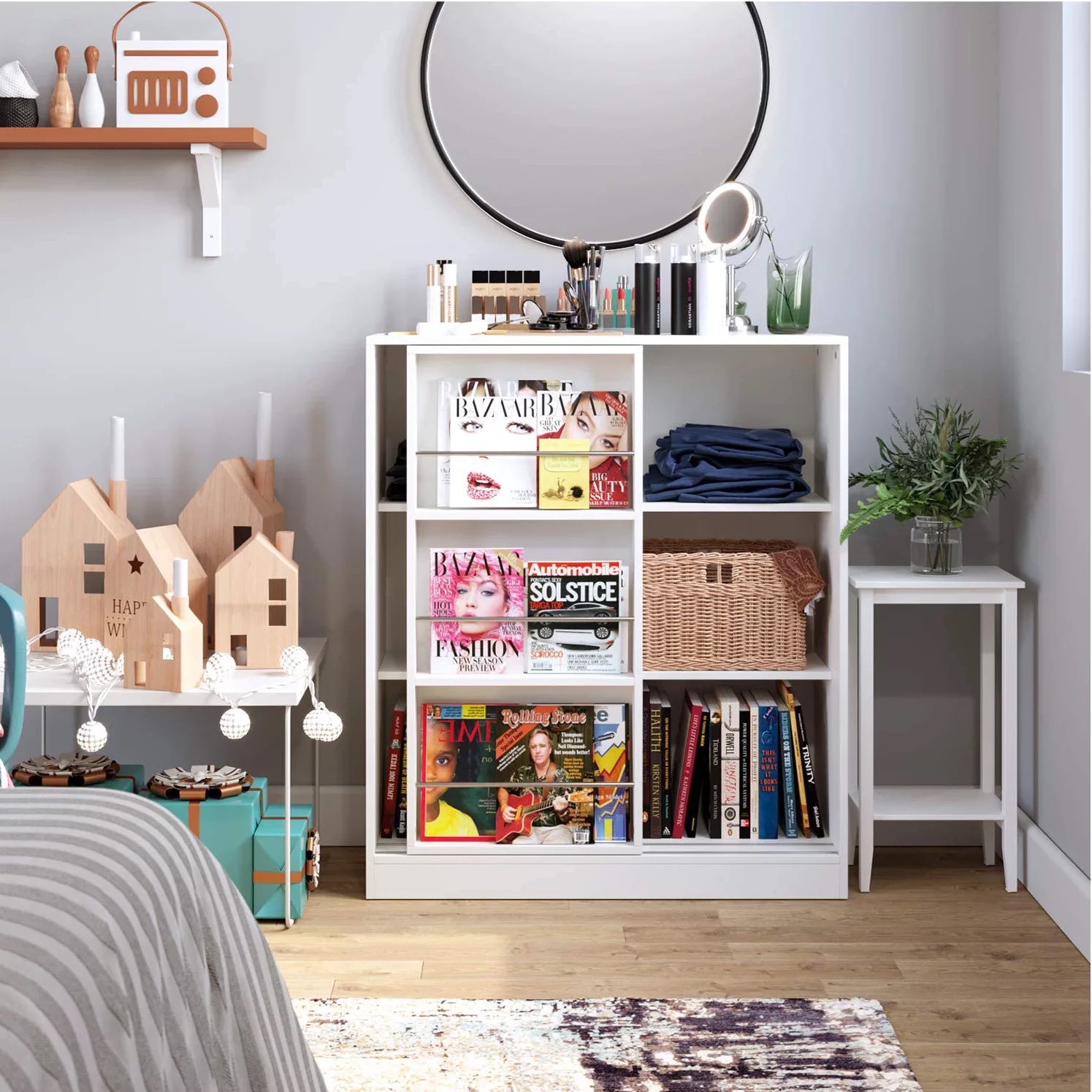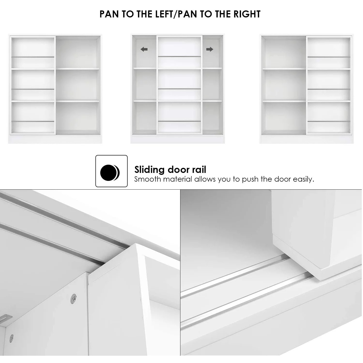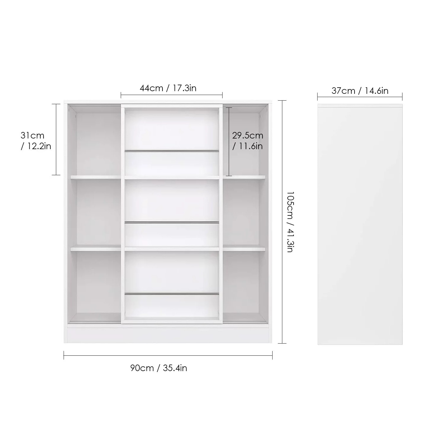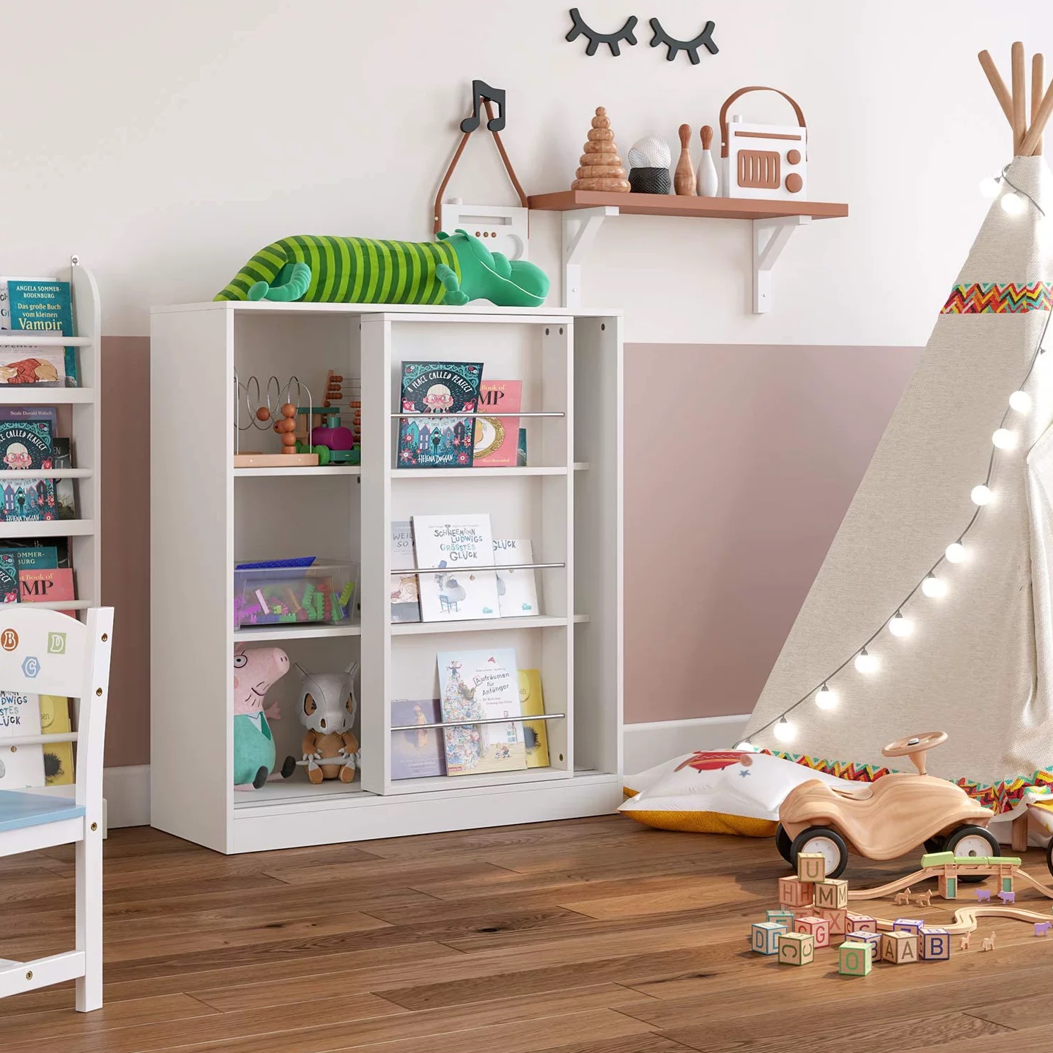 Homfa Kids Bookcase. 3-Tier Toy Organizer with Sliding Door. White