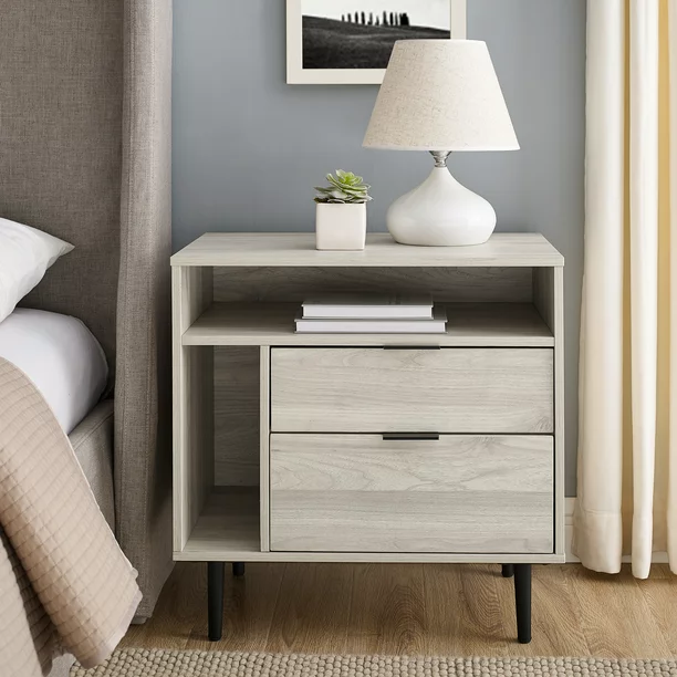 Manor Park Modern Nightstand With Drawers And Shelves. Birch