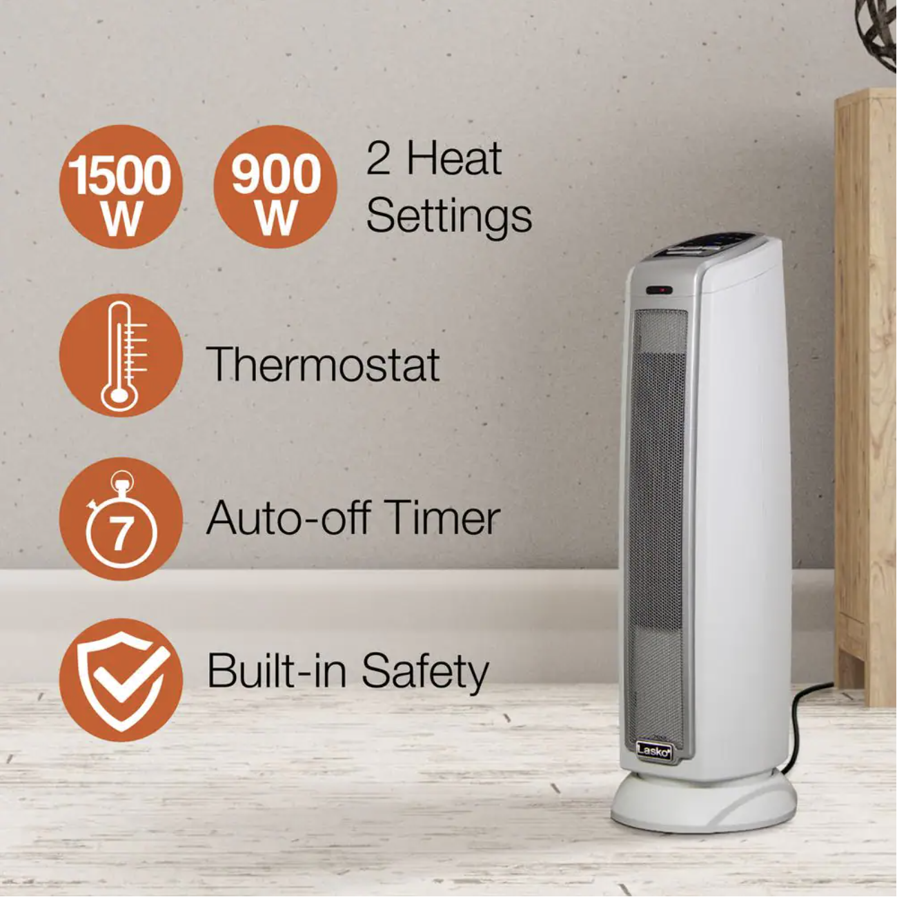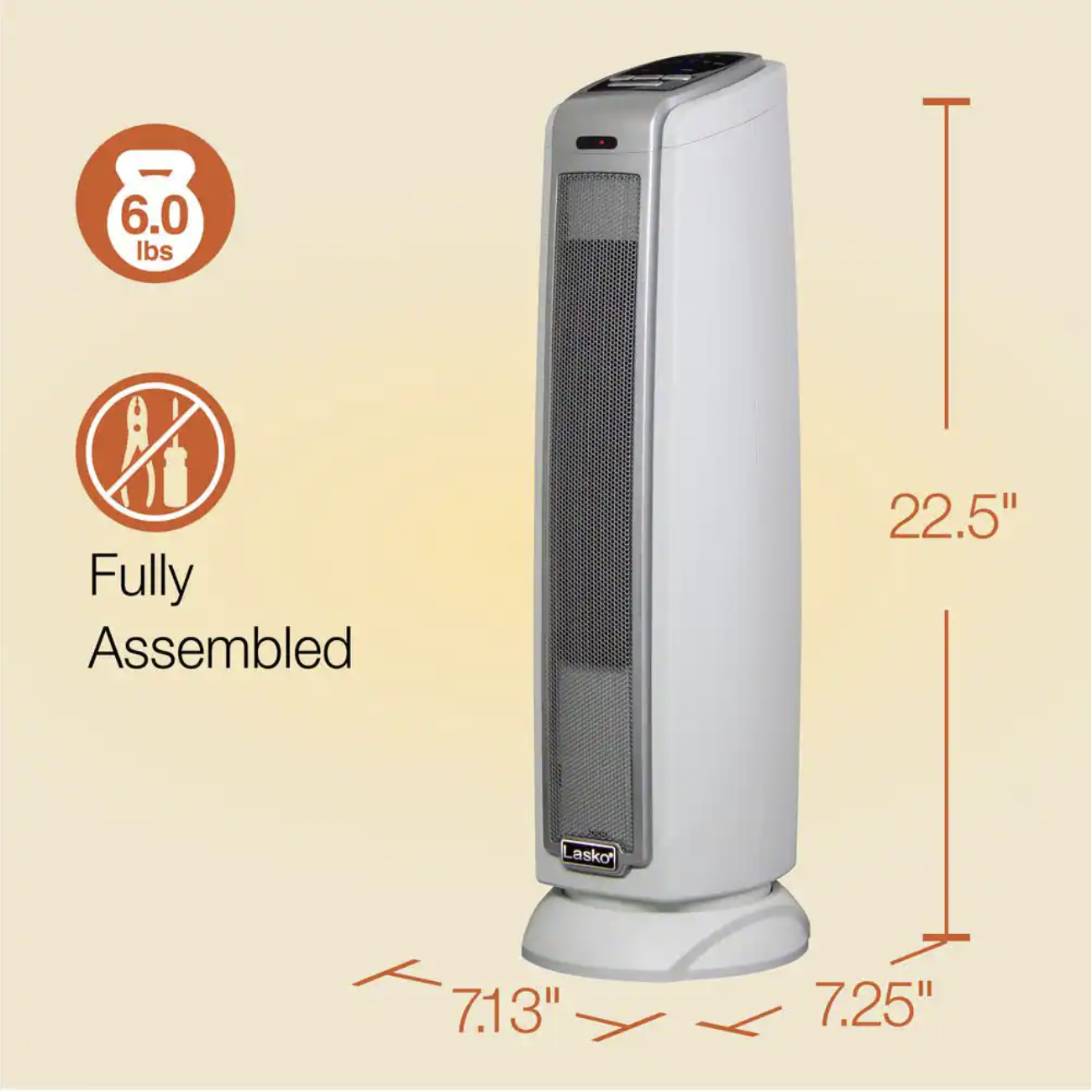 Lasko Tower 23 In. 1500-Watt Electric Ceramic Oscillating Space Heater. White