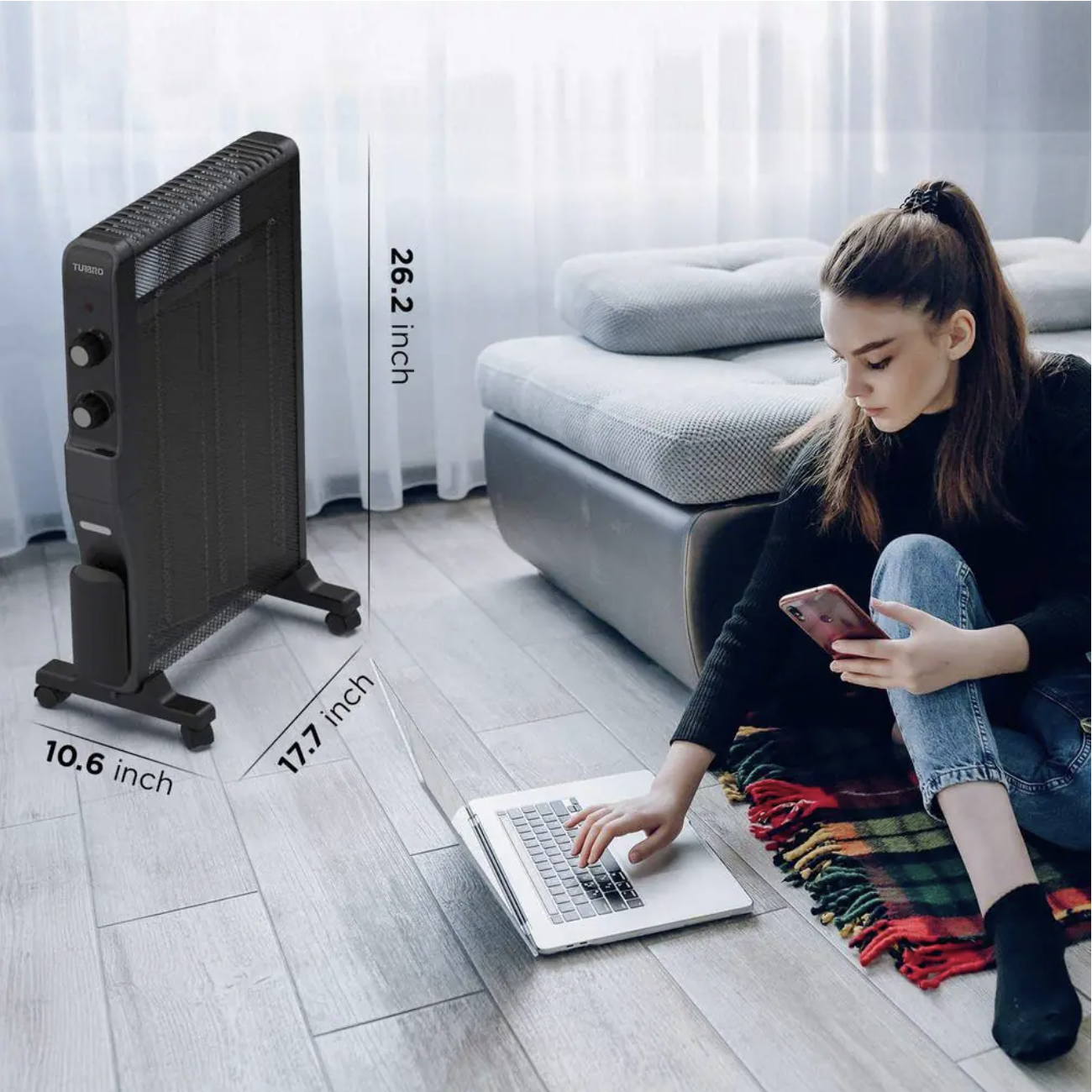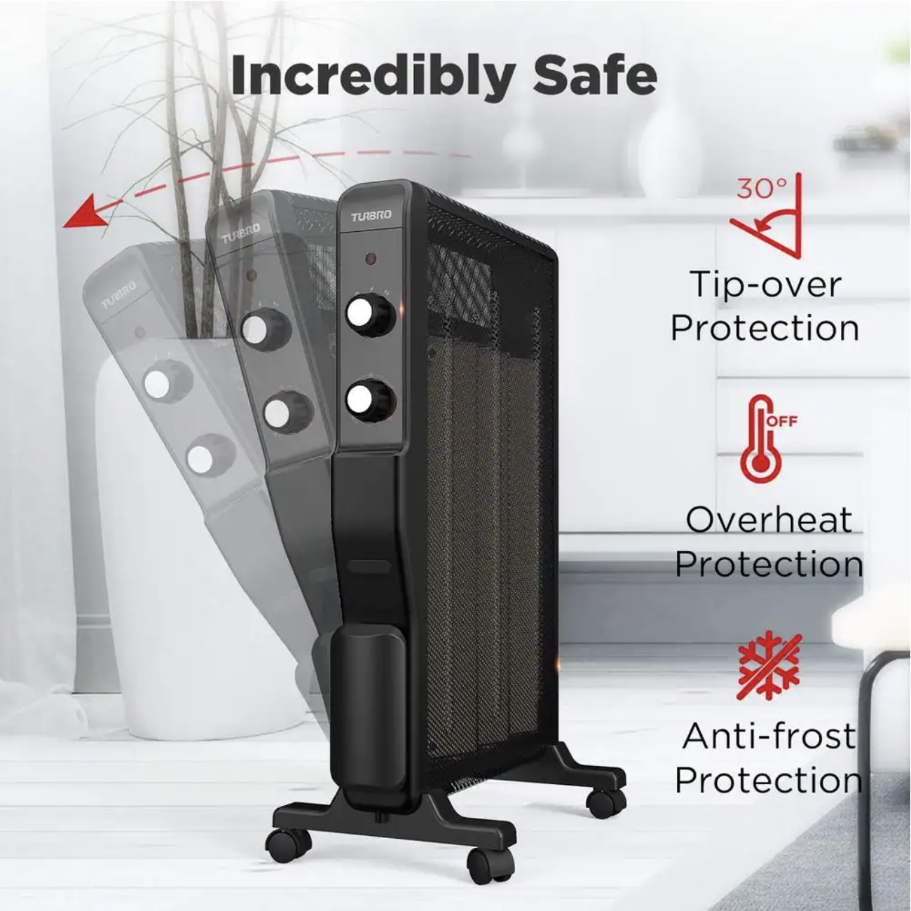 Turbro Arcade HR1500 1500-Watt Black Electric Space Micathermic Heater with Thermostat and Safety Protection