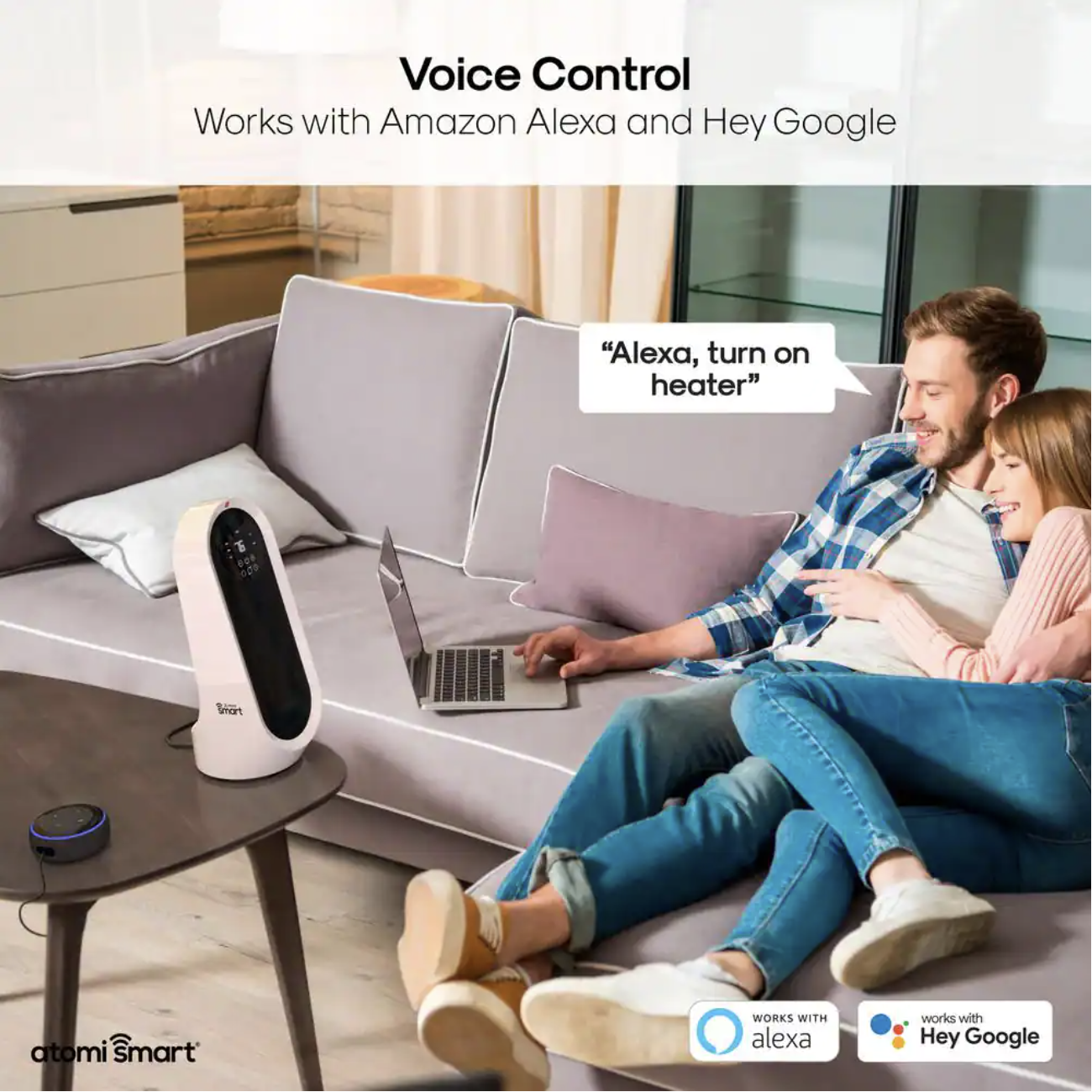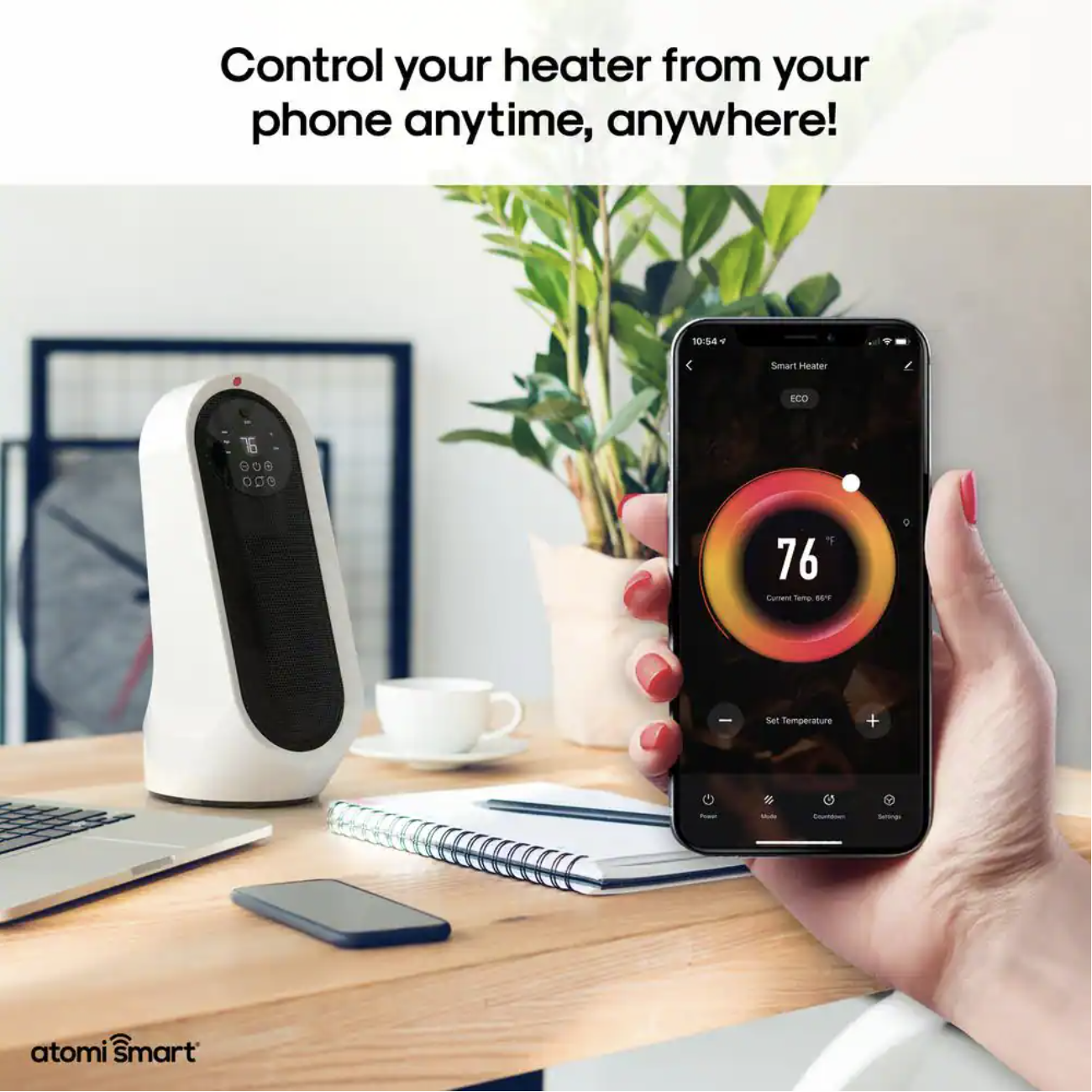 Atomi Smart Smart Wi-Fi 1500-Watt Electric Personal Portable Ceramic Oscillating Table Top Space Heater