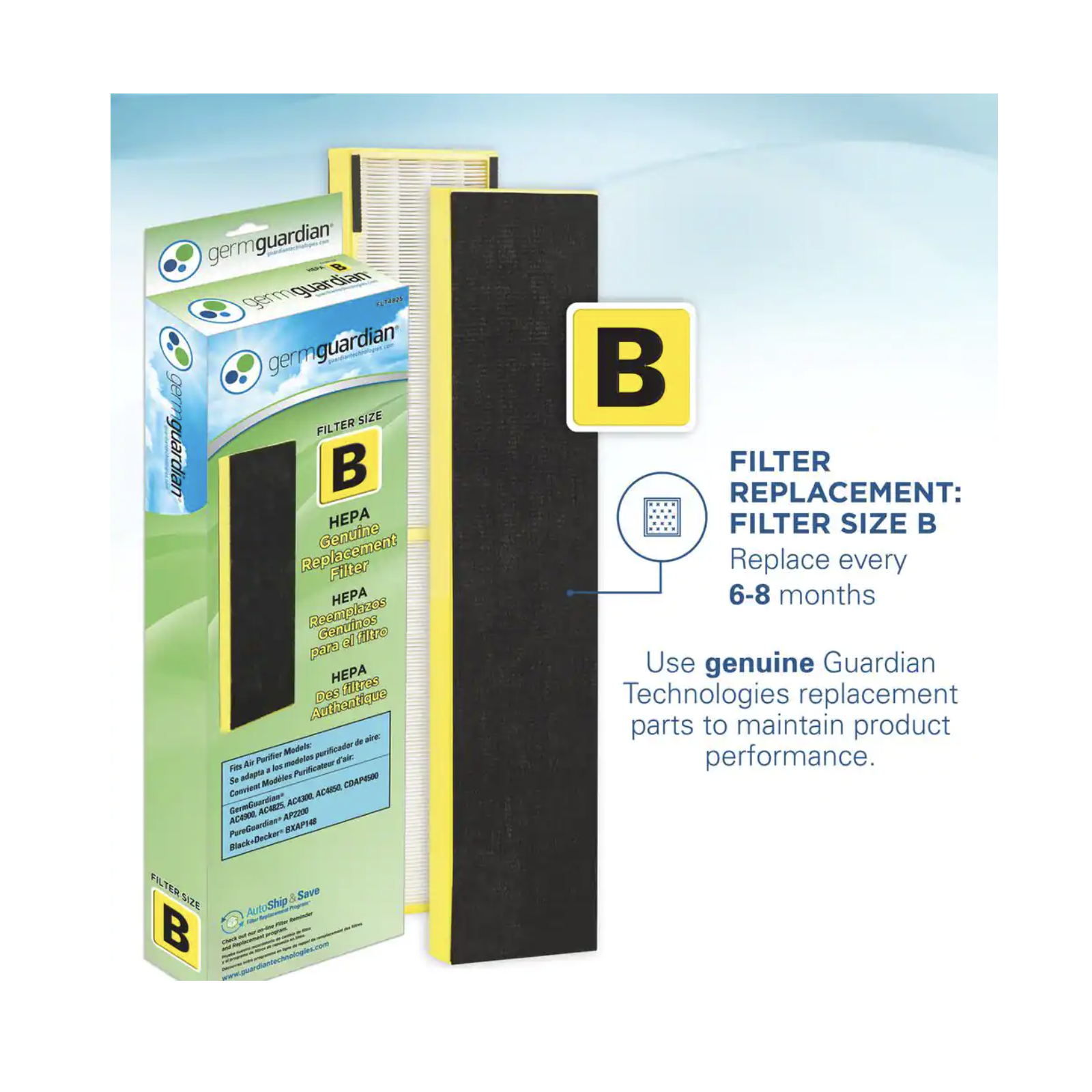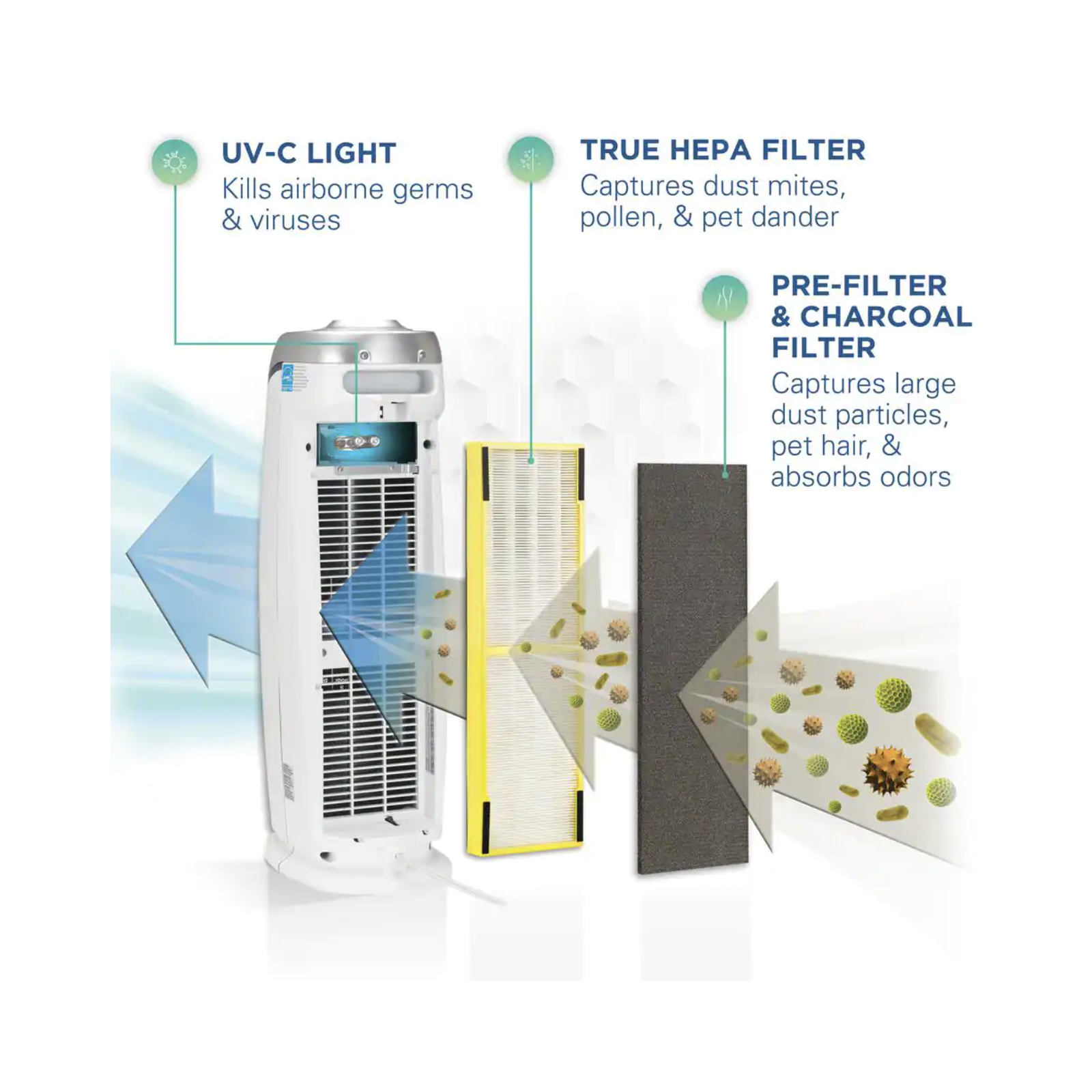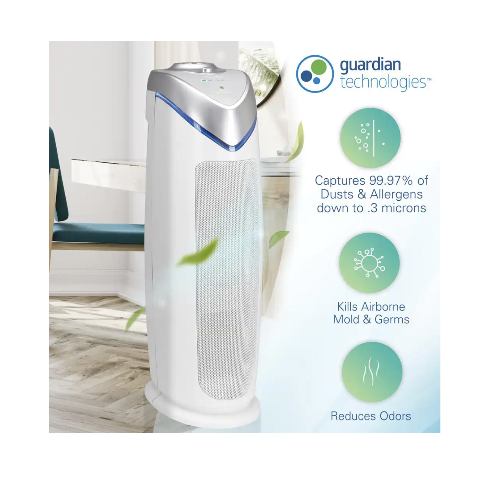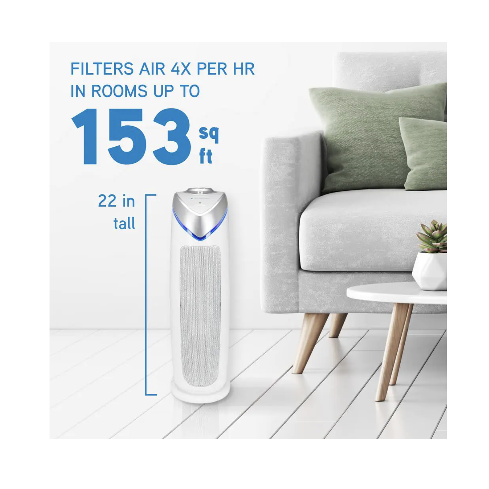 GermGuardian 22 in. 4-in-1 Air Purifier with True HEPA filter for Medium Rooms up to 153 Sq Ft. White