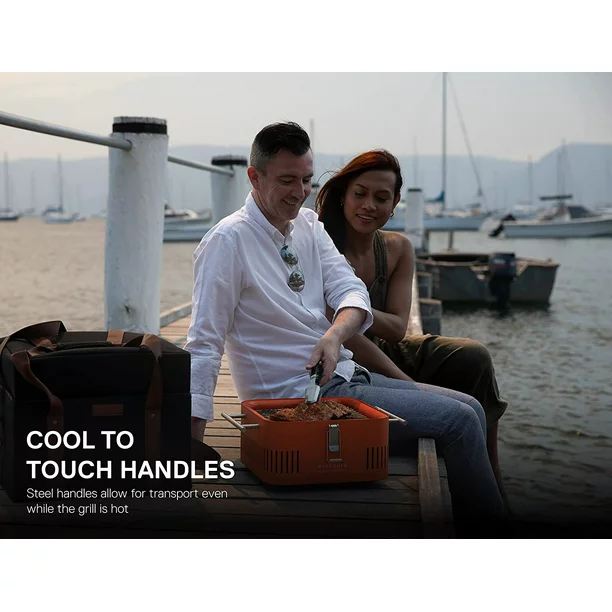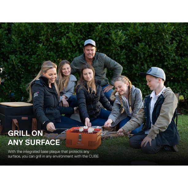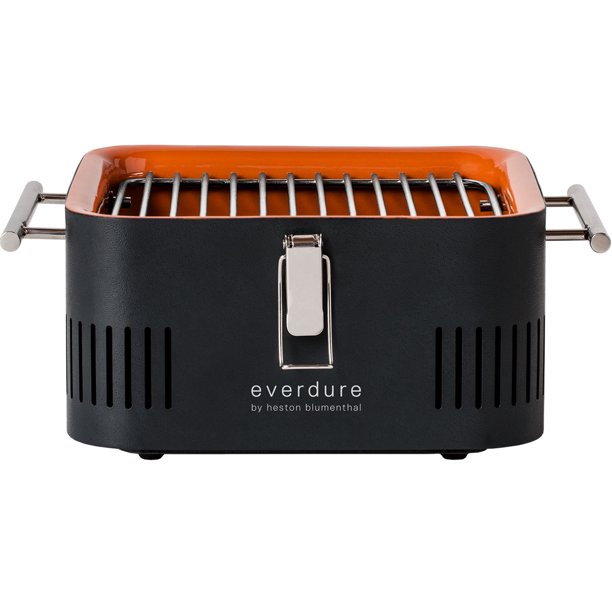 Everdure CUBE Charcoal Grill With Cool Touch Handles. Storage Container & Bamboo Serving Board
