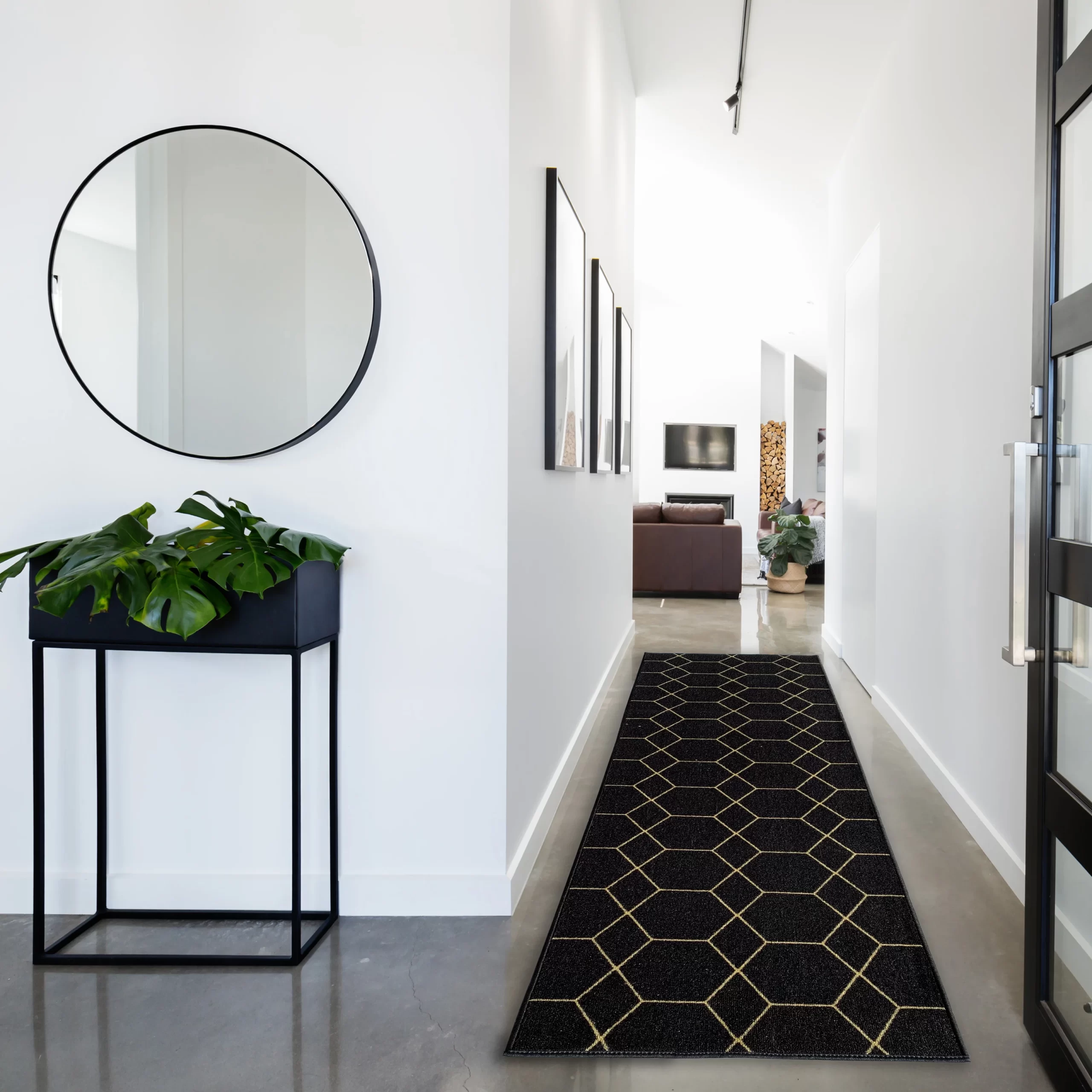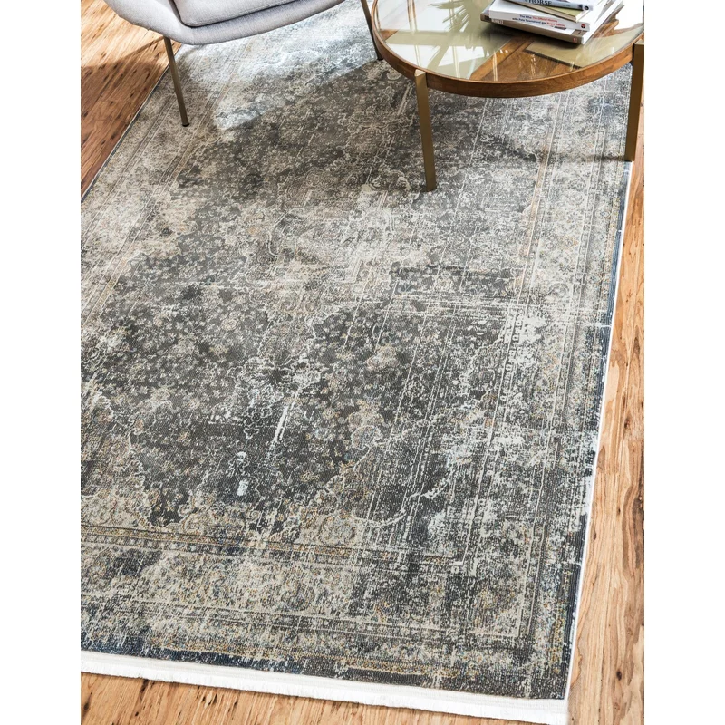 Williston Forge Broadway Machine Woven / Power Loomed Gray / Gold Rug. Rectangle 10′ x 14′
