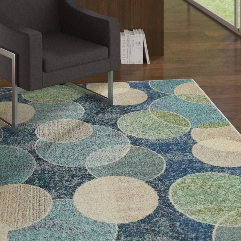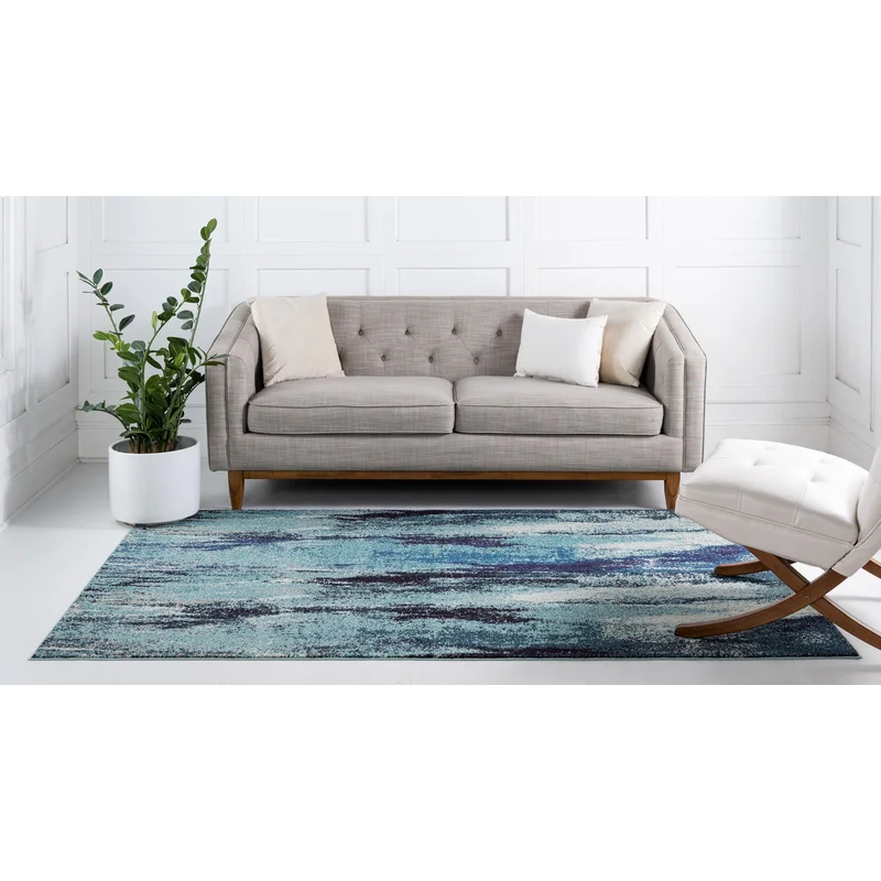 Wade Logan Dews Machine Woven/Power Loomed Performance Navy Blue Rug. Rectangle 10′ 6″ x 16′ 5″