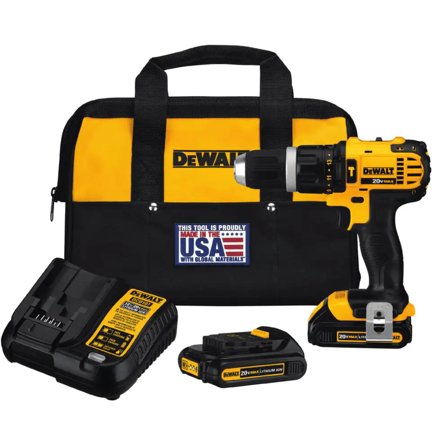 Dewalt DCD785C2 20-Volt MAX Cordless Compact 1/2 in. Hammer Drill/Driver with Batteries. Charger & Bag