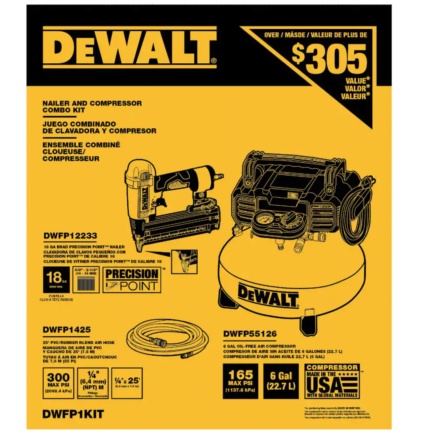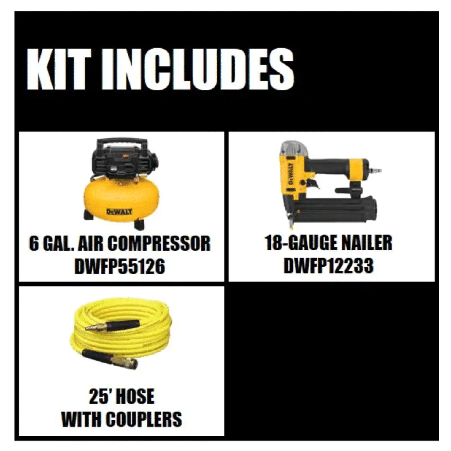 Dewalt 6 Gal. 18-Gauge Brad Nailer and Heavy-Duty Pancake Electric Air Compressor Combo Kit. 1-Tool (DWFP1KIT)