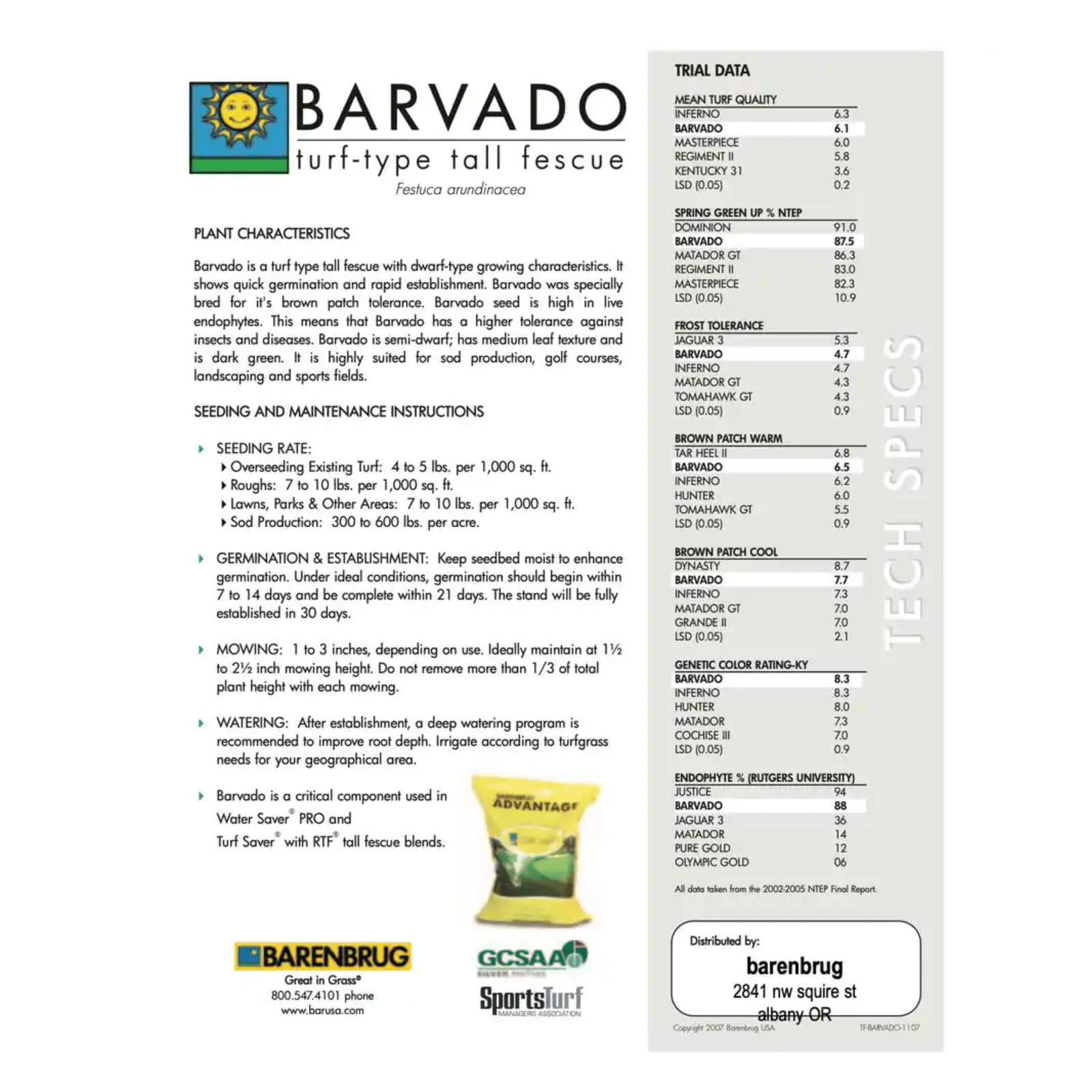 Barenbrug 50 lb. Barvado Tall Fescue Grass Seed