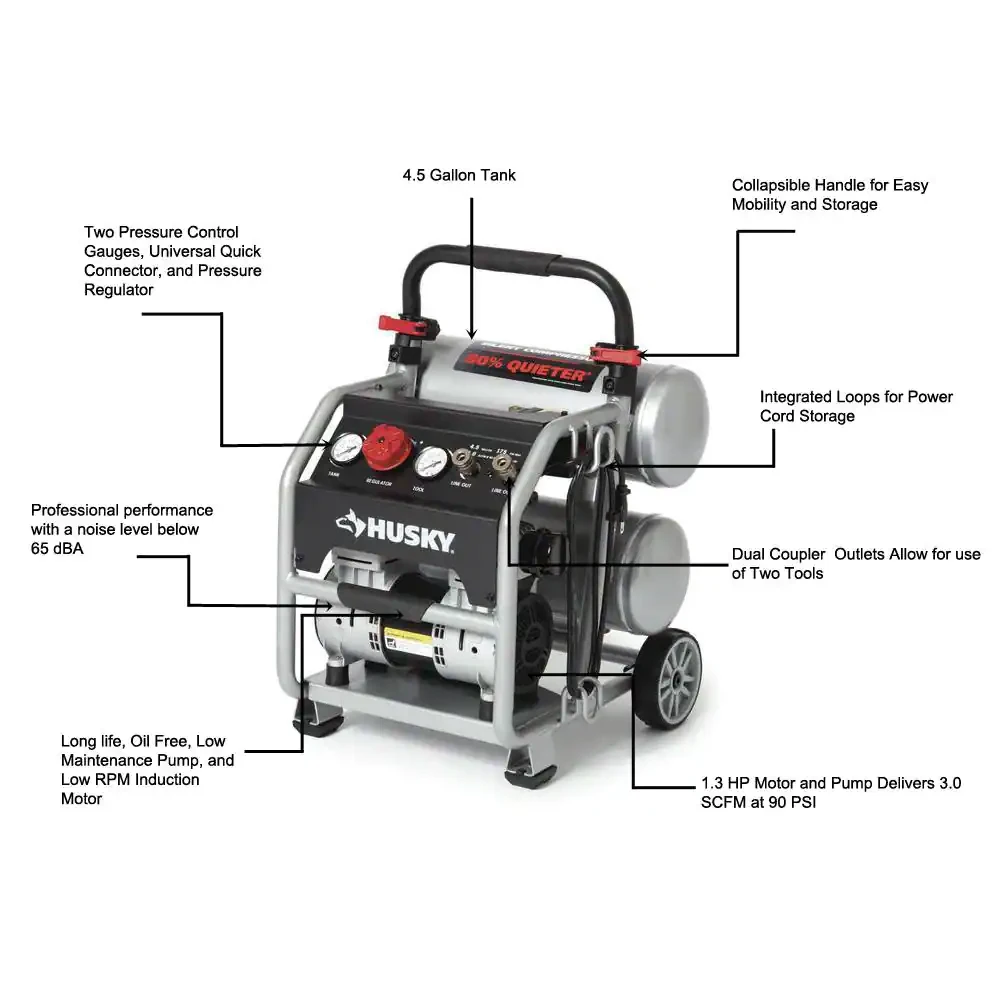 Husky 4.5 Gal. Portable Electric-Powered Silent Air Compressor