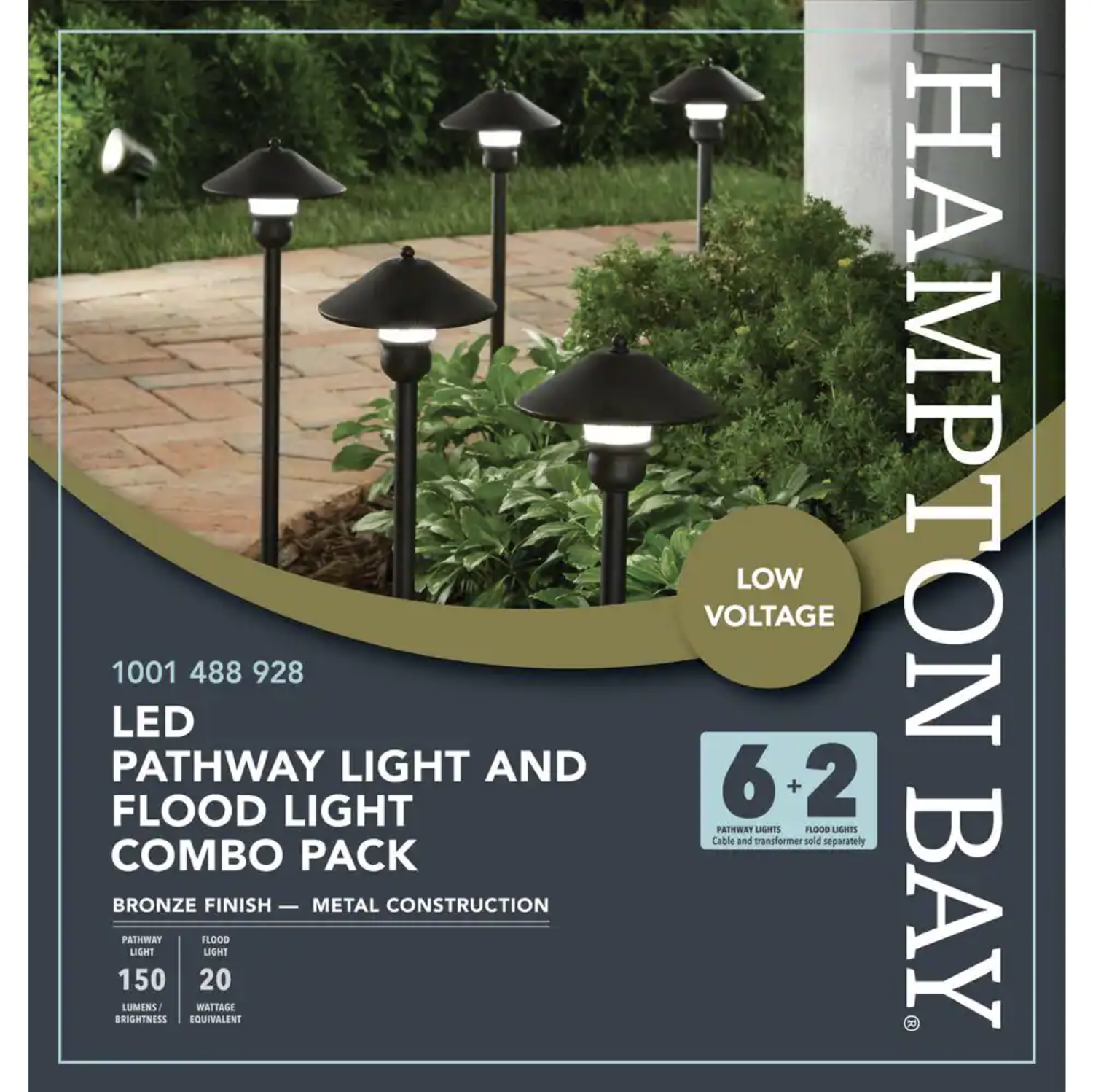Hampton Bay Low-Voltage Bronze Outdoor Integrated LED Landscape Path Light and Flood Light Kit. 8-Pack