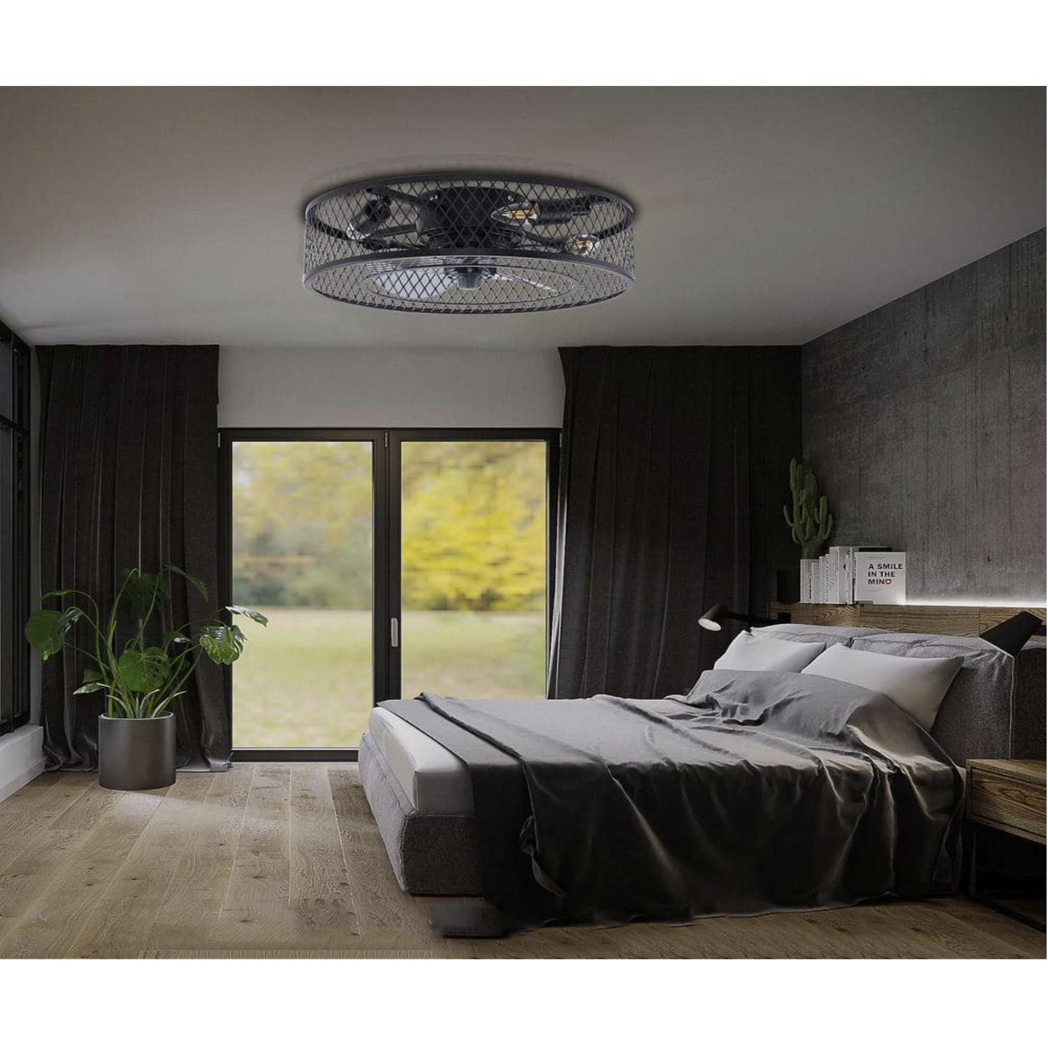 Oukaning 18 in. 4-Light Retro Industrial Style Indoor Black Metal Caged Ceiling Fan with Light Kit and Remote Control
