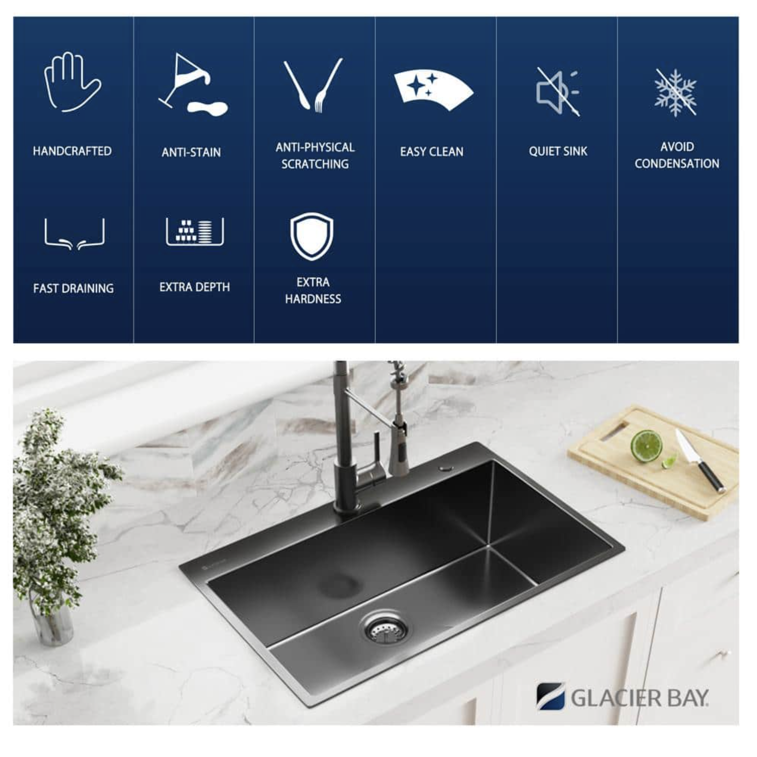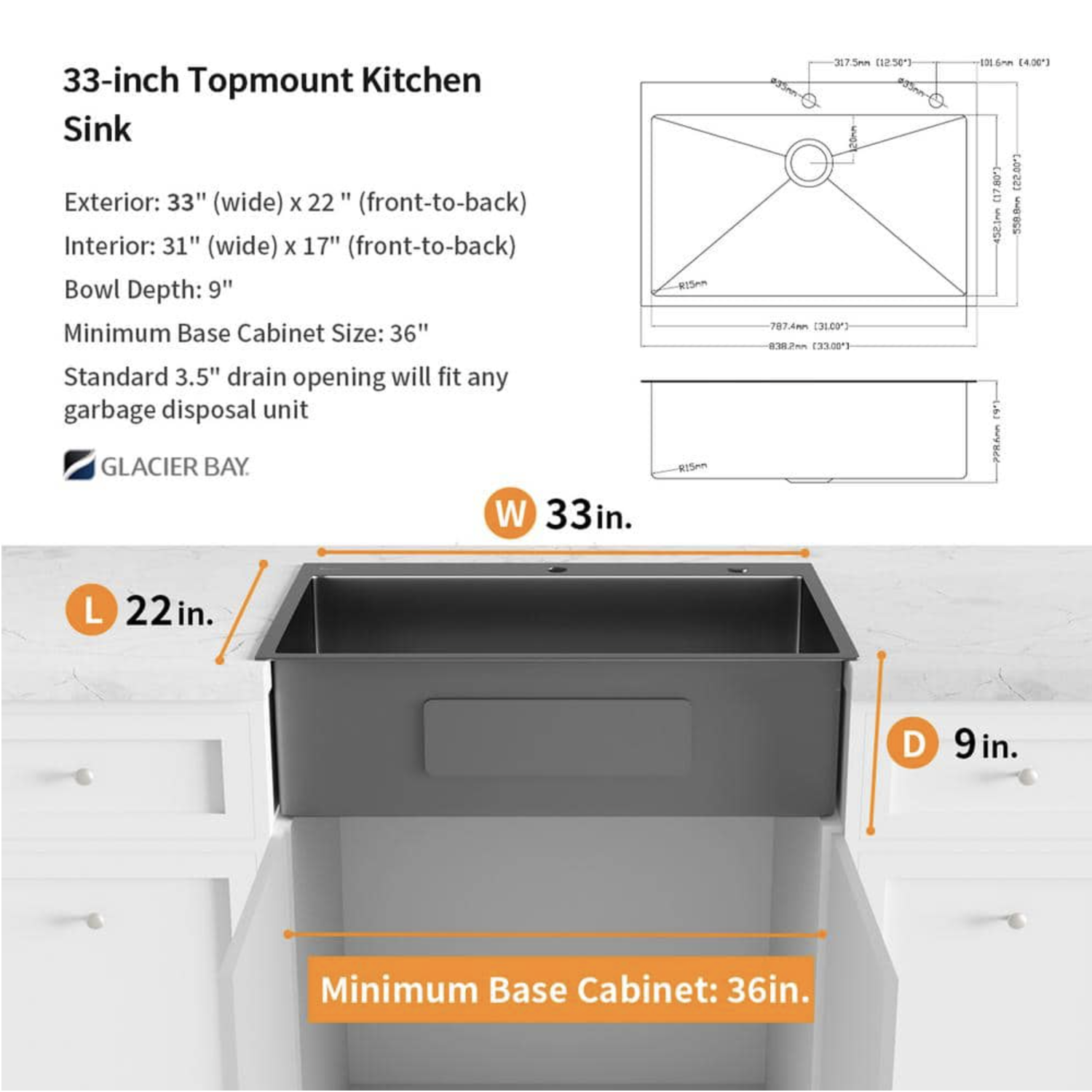 Glacier Bay Black Stainless Steel 33 in. 18-Gauge Single Bowl Drop-In Kitchen Sink