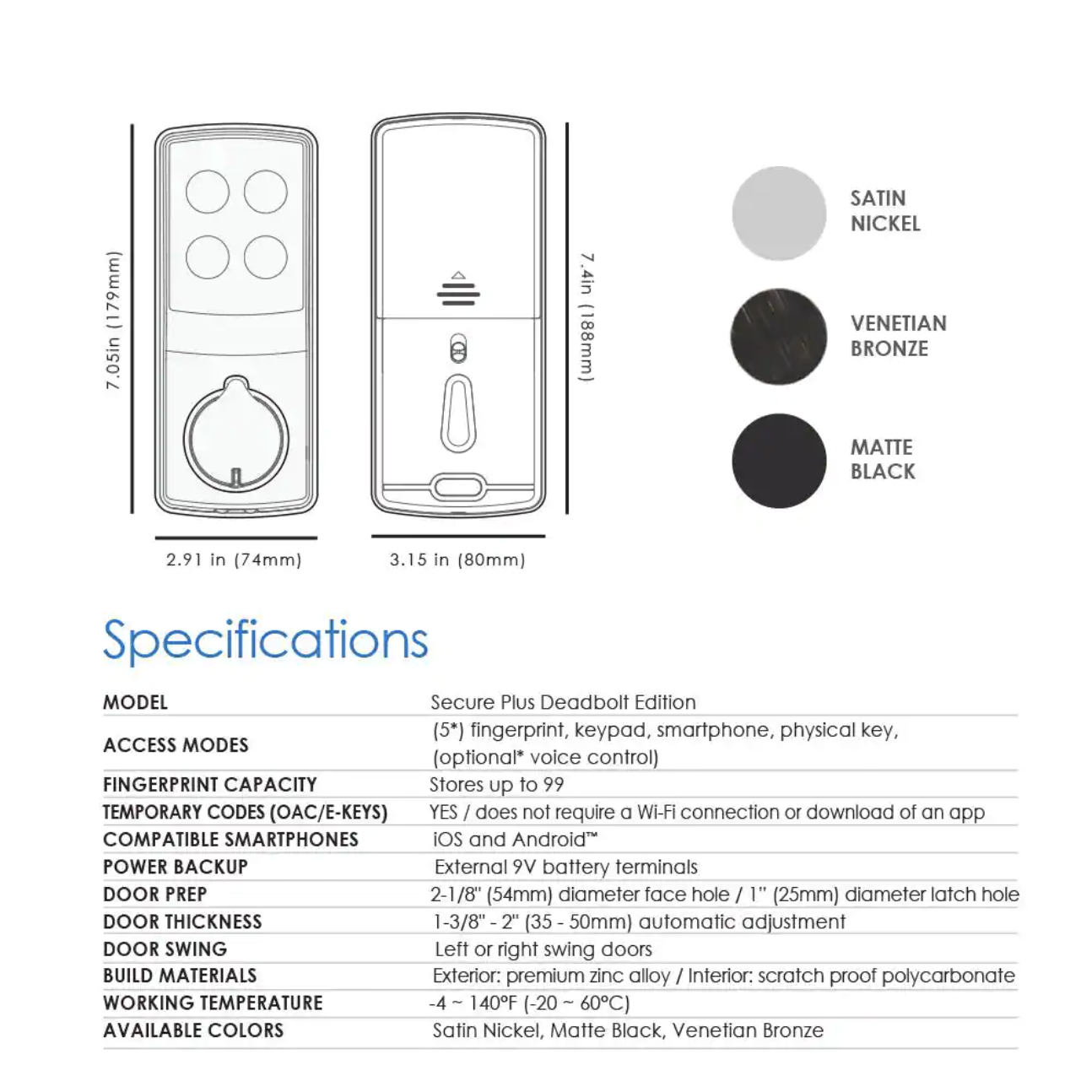 Lockly Secure Plus Matte Black Single-Cylinder Keypad Smart Alarmed Lock Deadbolt with Bluetooth. 3D Fingerprint Sensor