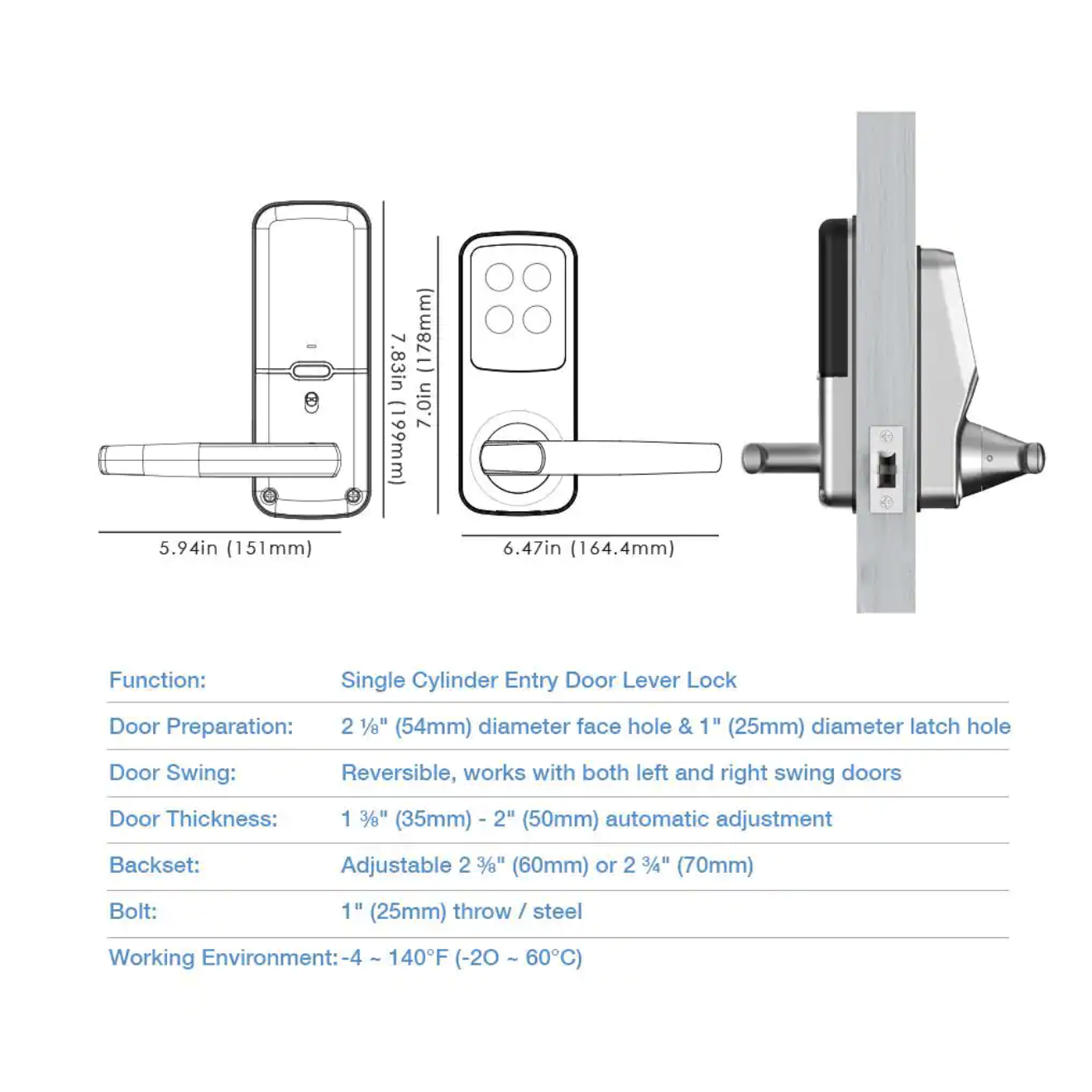 Lockly Secure Plus Satin Nickel Smart Touchscreen Keypad Door Latch Lock with Fingerprint and Bluetooth