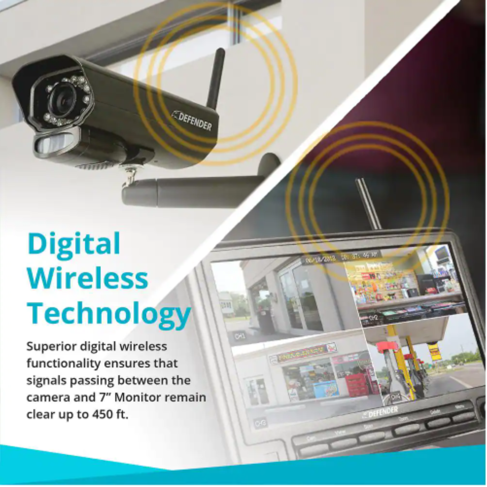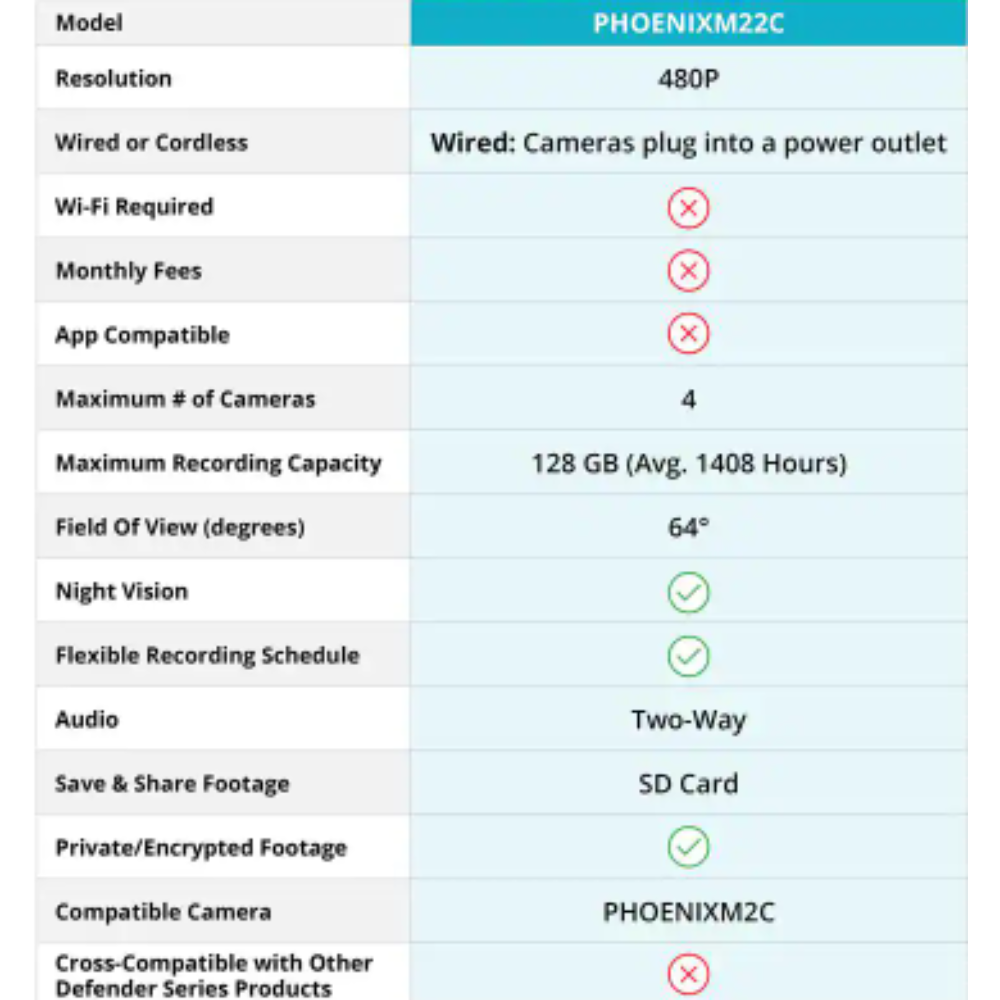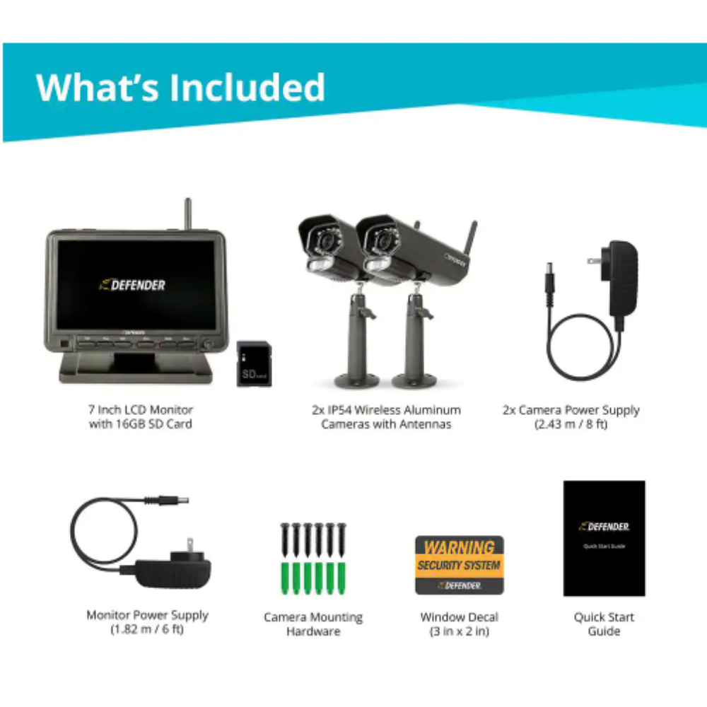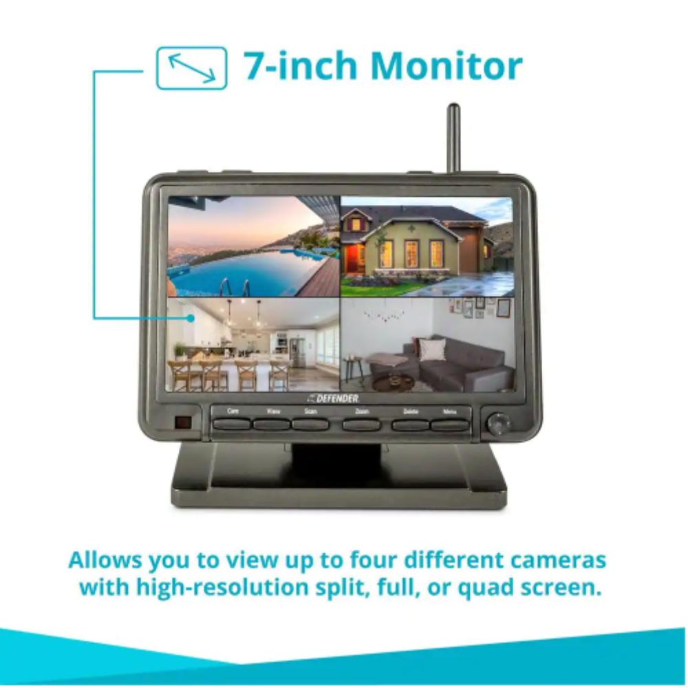 Defender PHOENIXM2 Non-Wi-Fi. Plug-In Power Security Camera System with 7″ Monitor SD Card Recording and 2 Night Vision Cameras