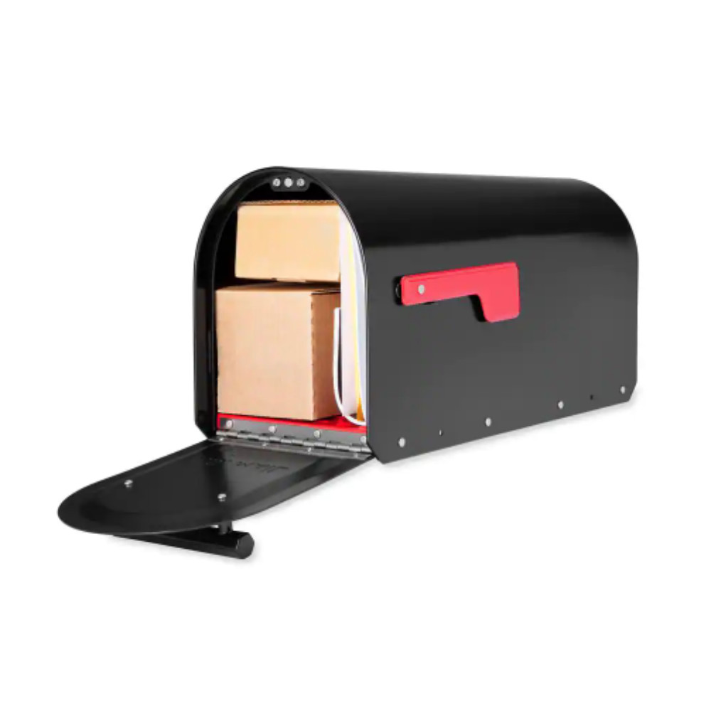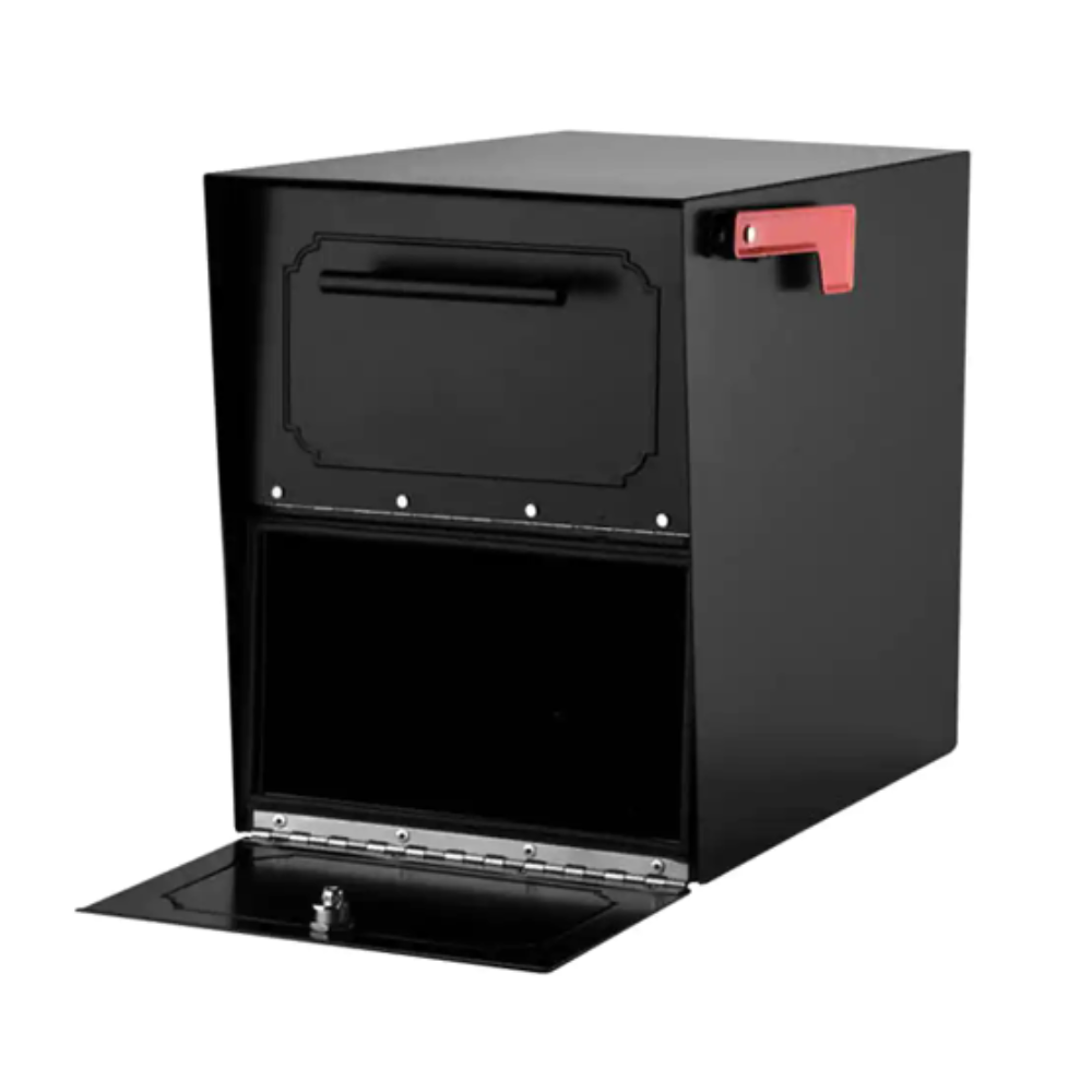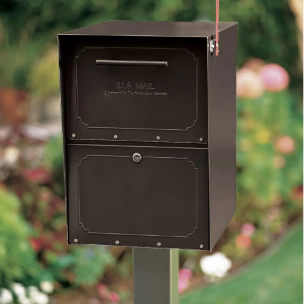 Architectural Mailboxes Oasis Black. Extra Large. Steel. Locking. Post Mount or Column Mount Mailbox with Outgoing Mail Indicator
