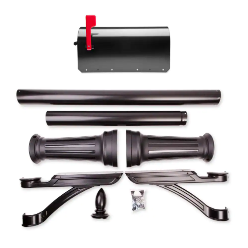 Architectural Mailboxes Sequoia Black. Large. Steel Post Mount Mailbox and Hamilton Post Combo Kit
