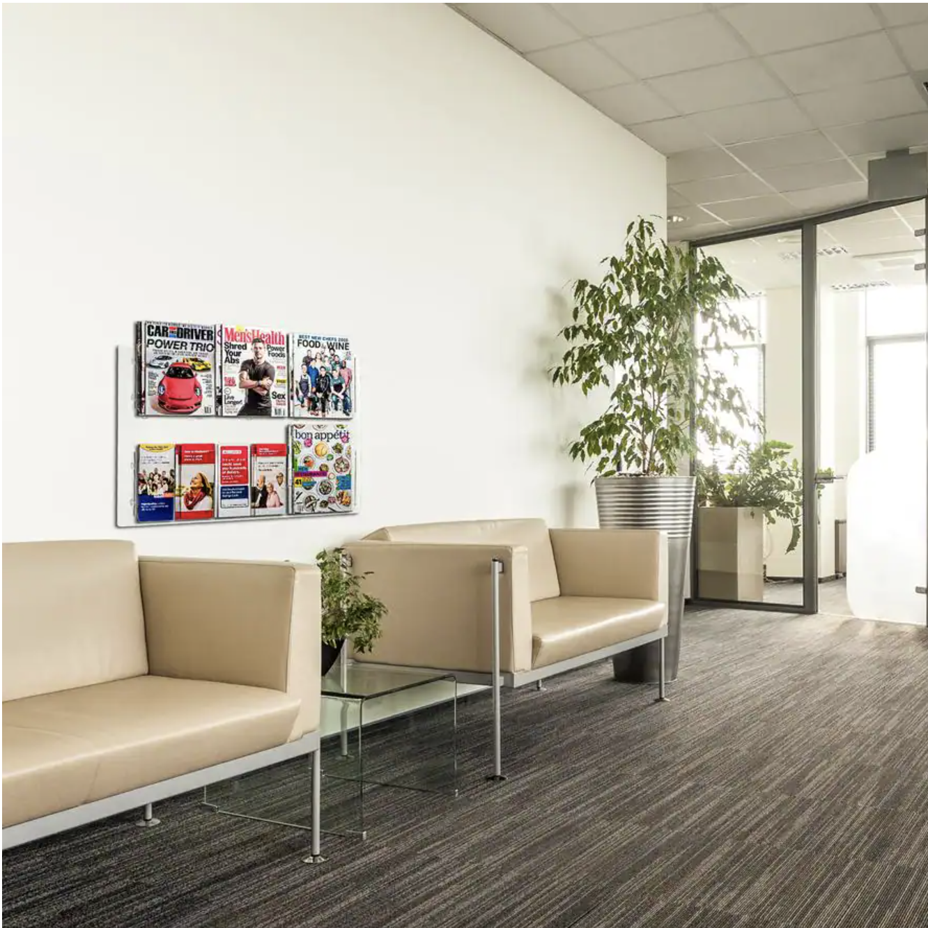 AdirOffice 29 in. x 48 in. Adjustable Pockets Clear Acrylic Hanging Magazine Rack