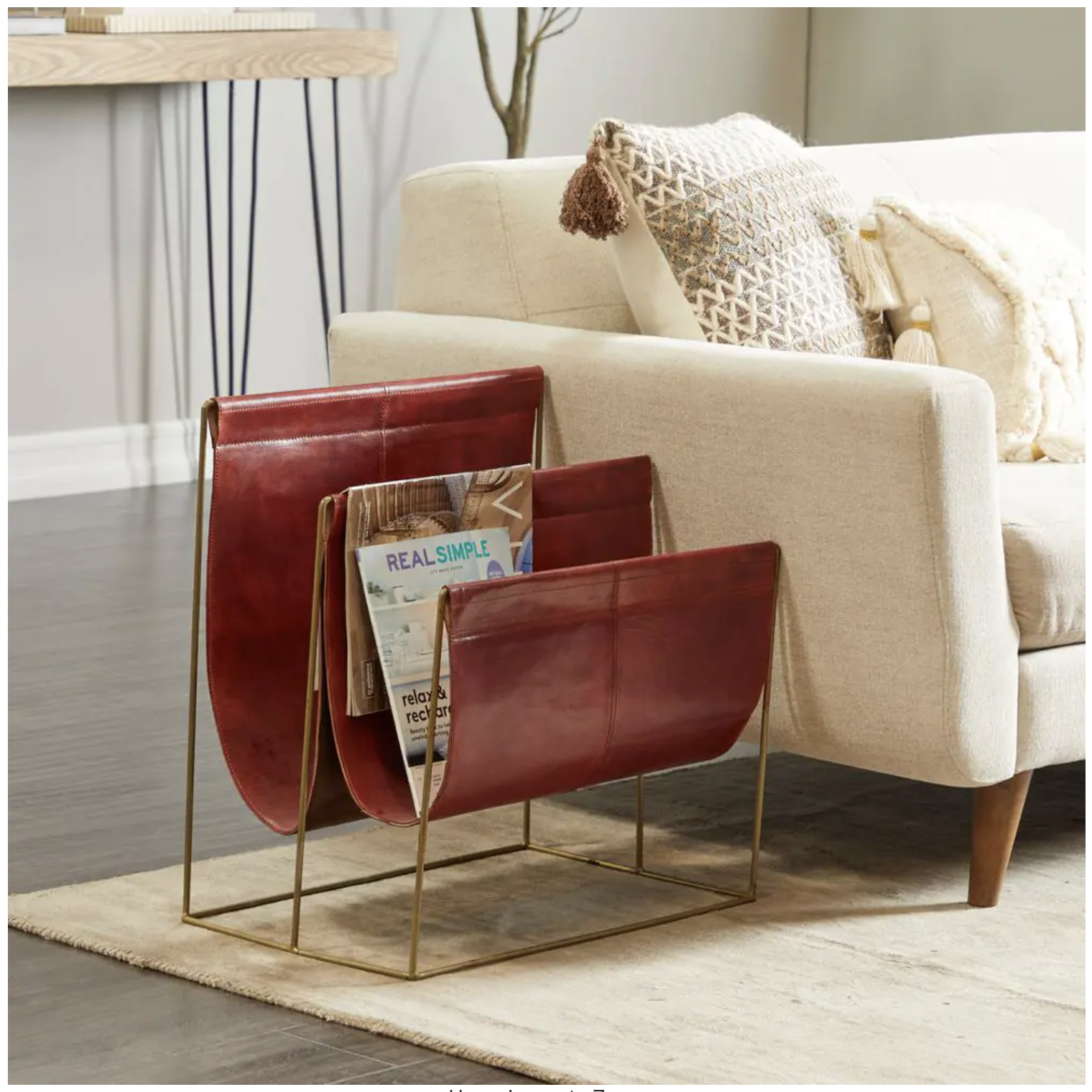 Litton Lane Modern Red Leather Magazine Holder