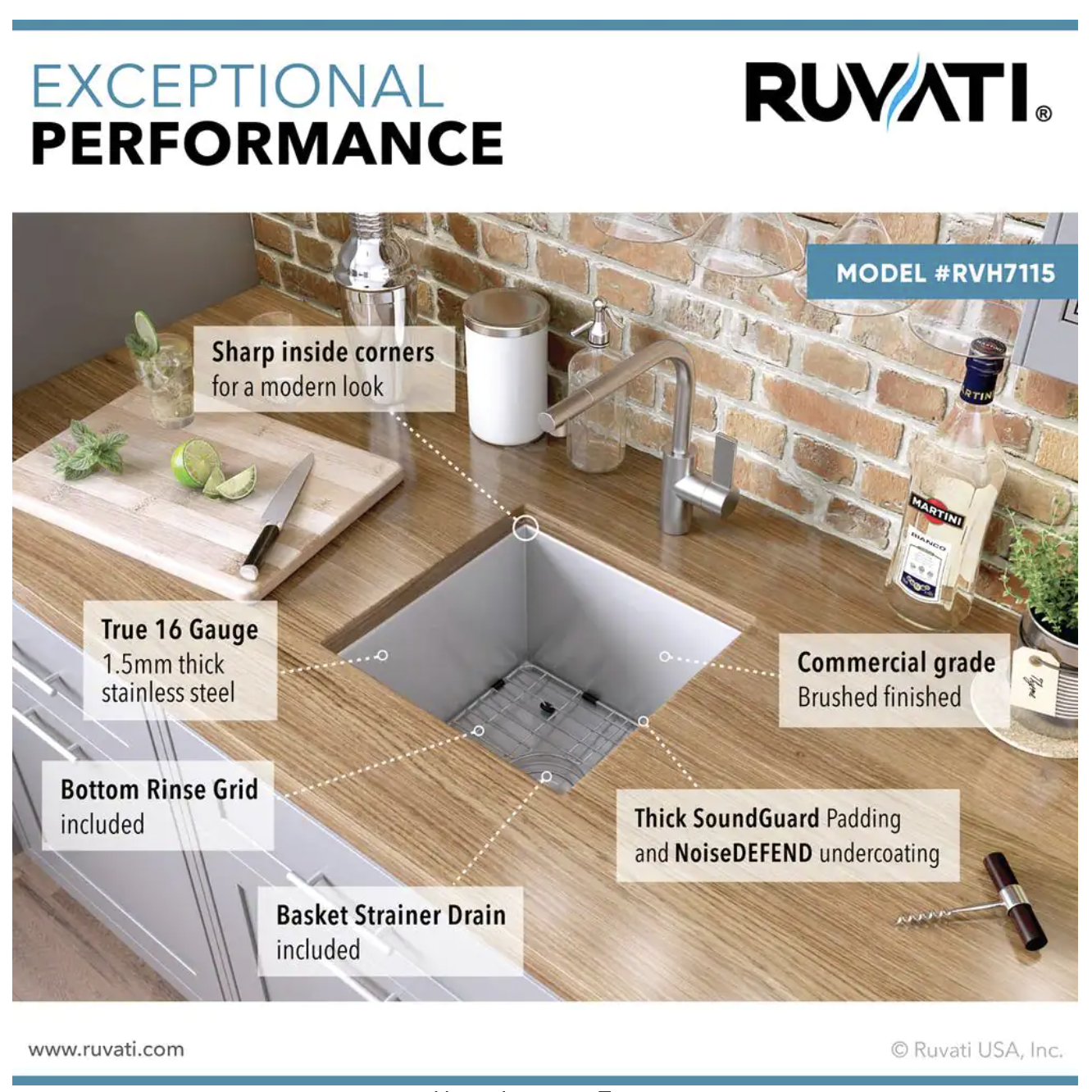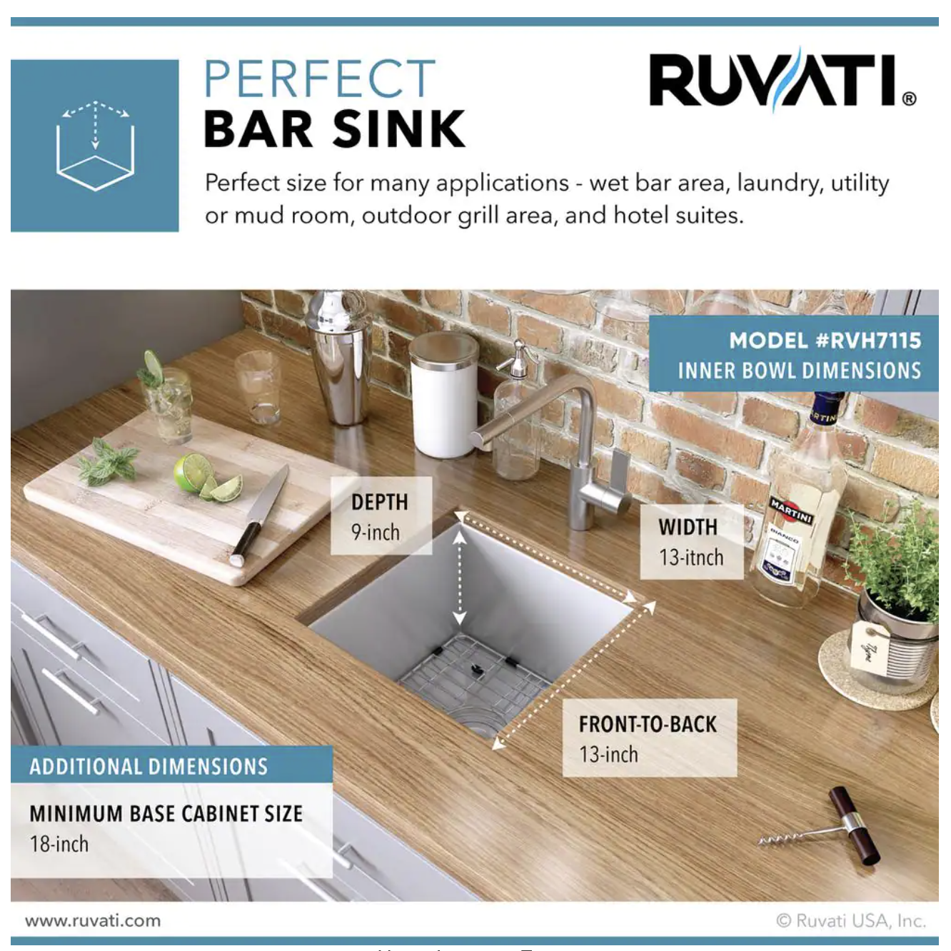 Ruvati Nesta 16 Gauge Stainless Steel 15 in. Undermount Bar Sink