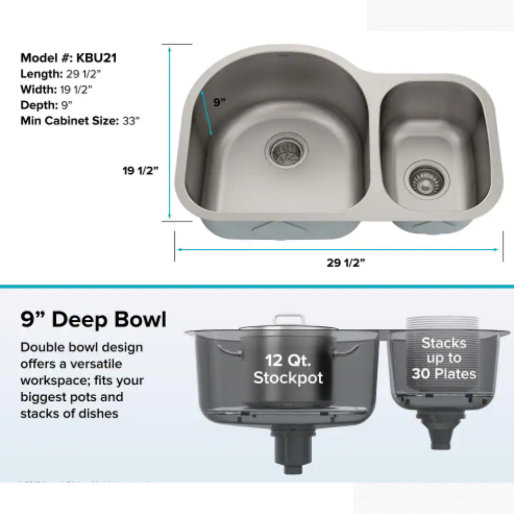 Kraus Premier Undermount Stainless Steel 30 in. 60/40 Double Bowl Kitchen Sink