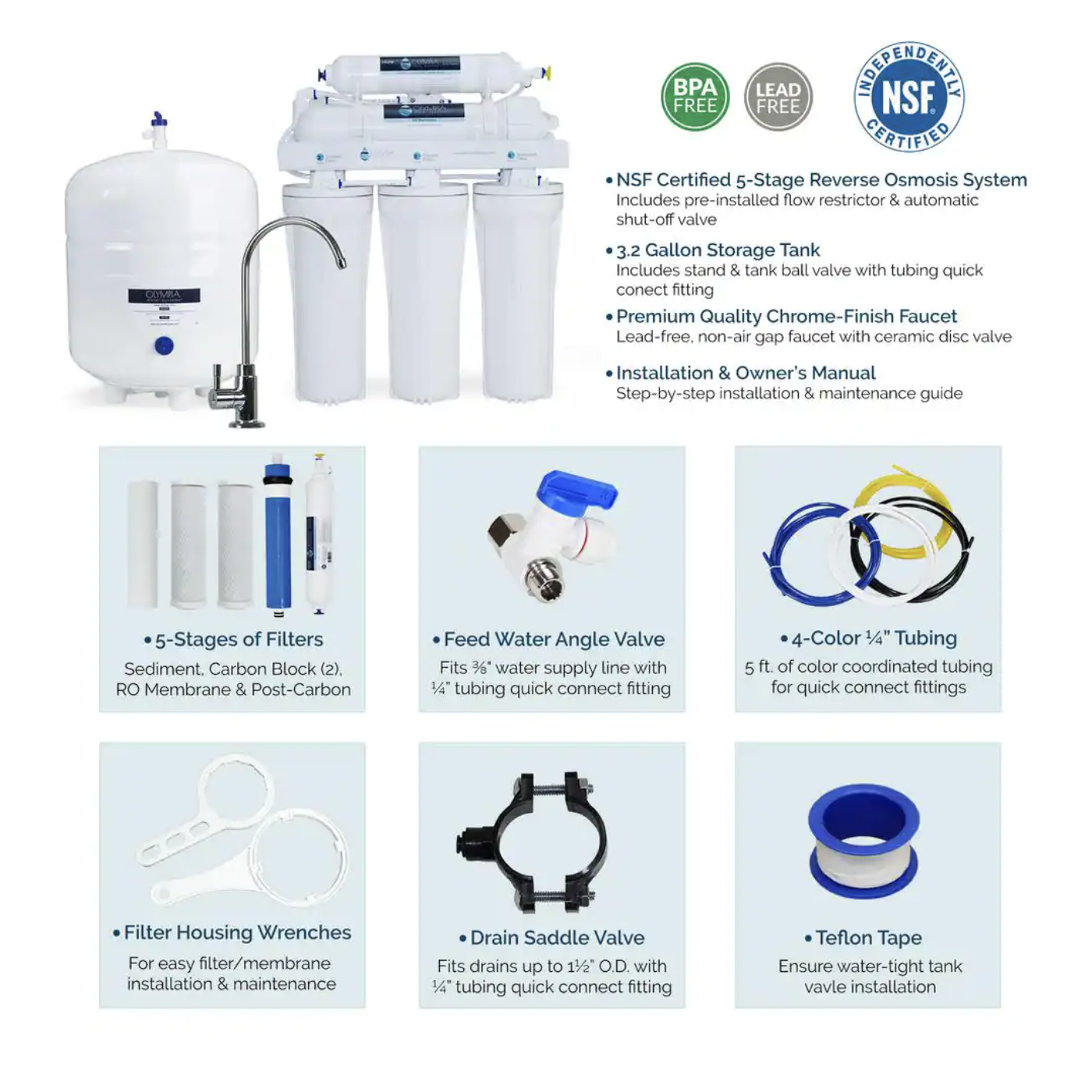 Olympia Water Systems 5-Stage Under-Sink Reverse Osmosis Water Filtration System with 50 GPD Membrane