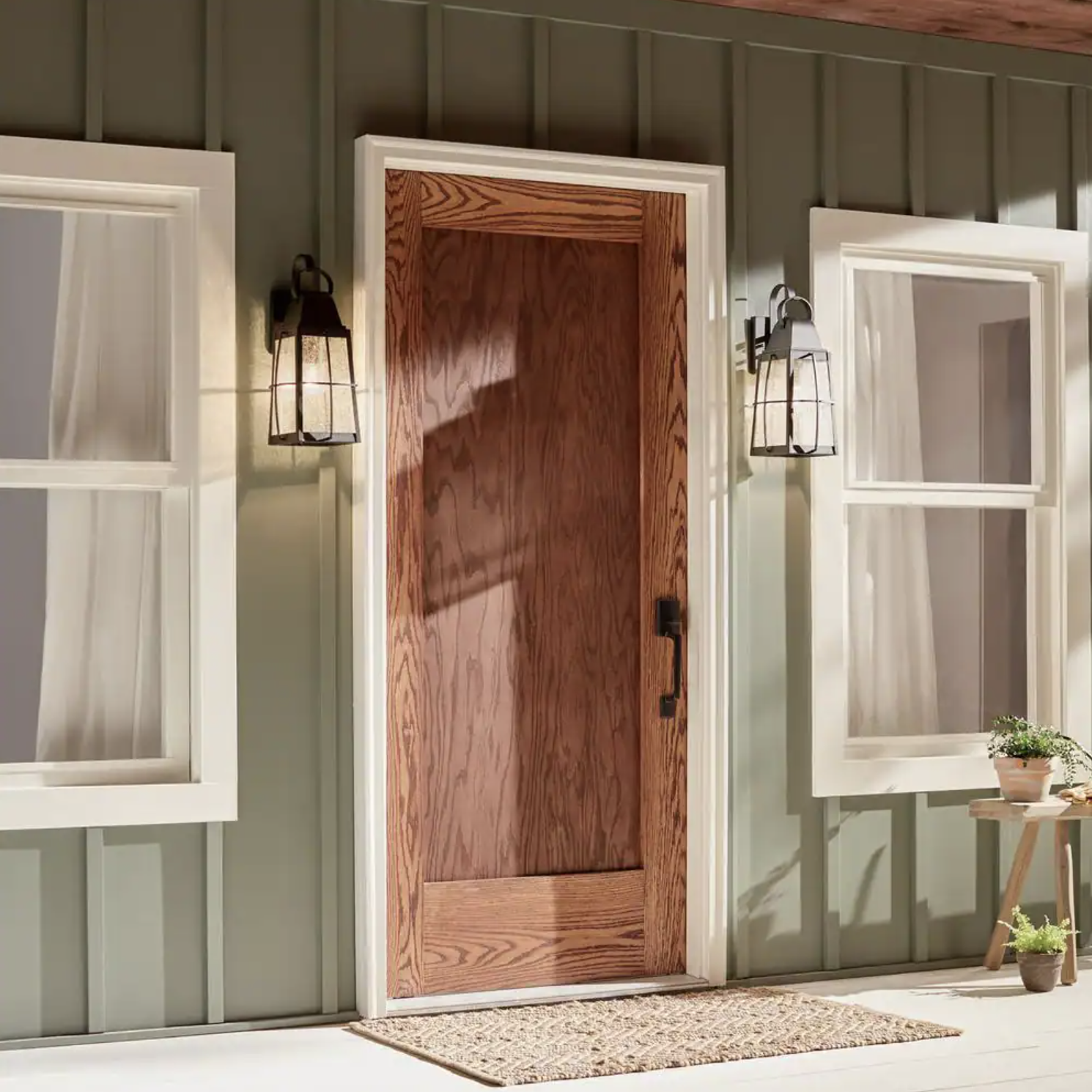 Kichler Tolerand 17.75 in. 1-Light Textured Black Outdoor Light Wall Sconce with Clear Seeded Glass (1-Pack)