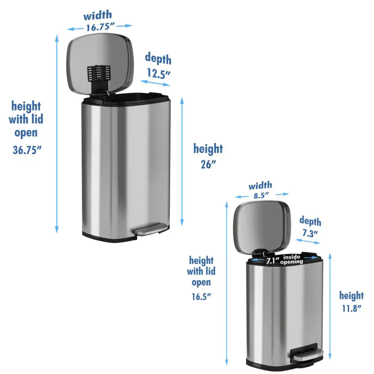 iTouchless 13 Gal. and 1.32 Gallon SoftStep Stainless Steel Step Trash Can Combo Set. Removable Bucket