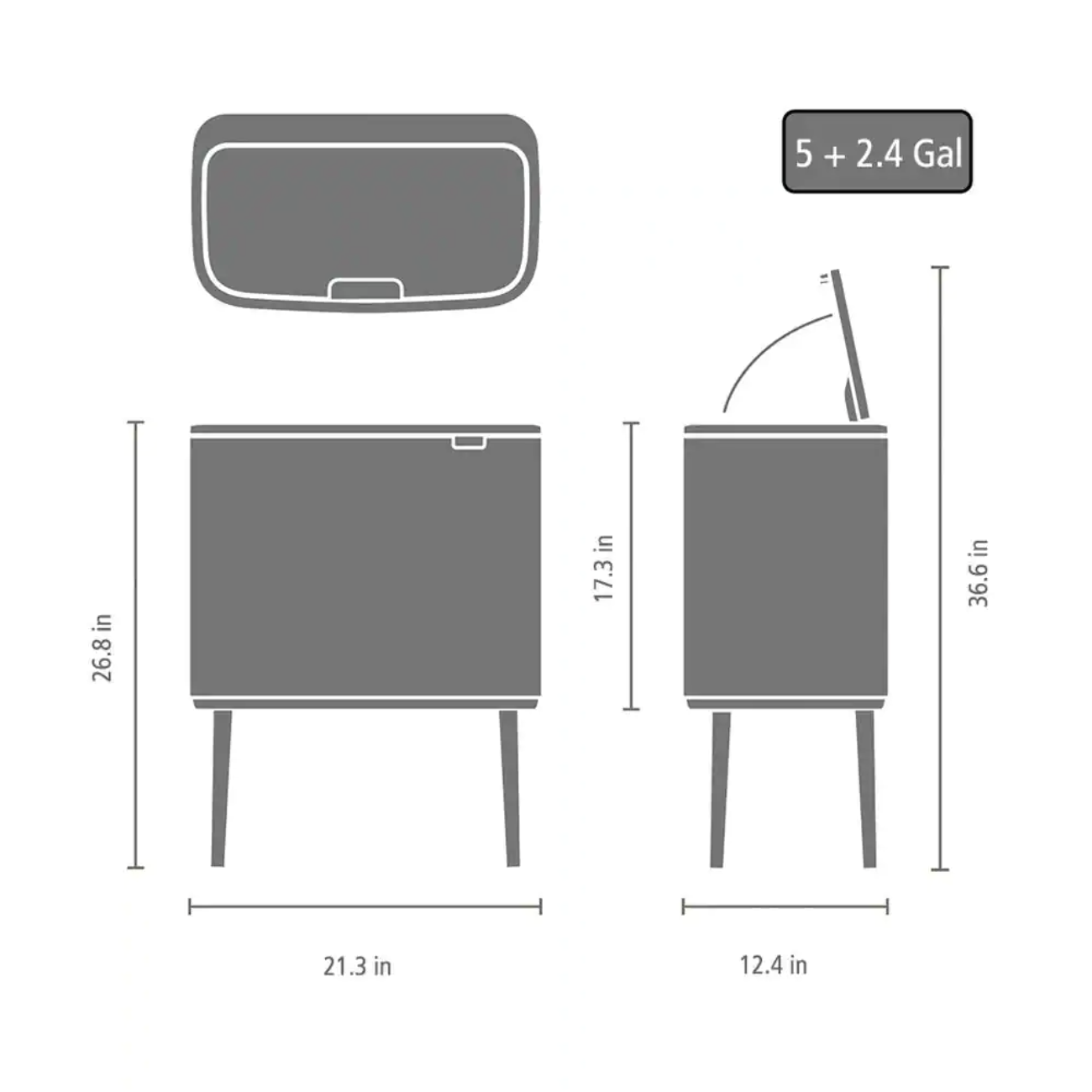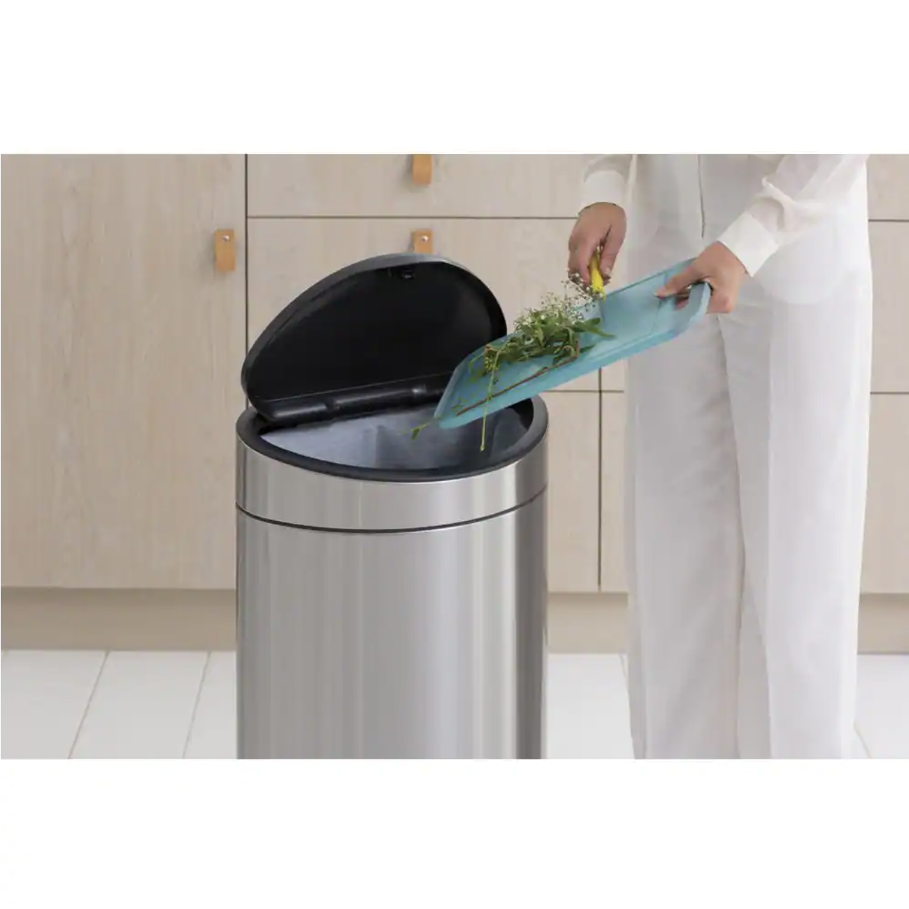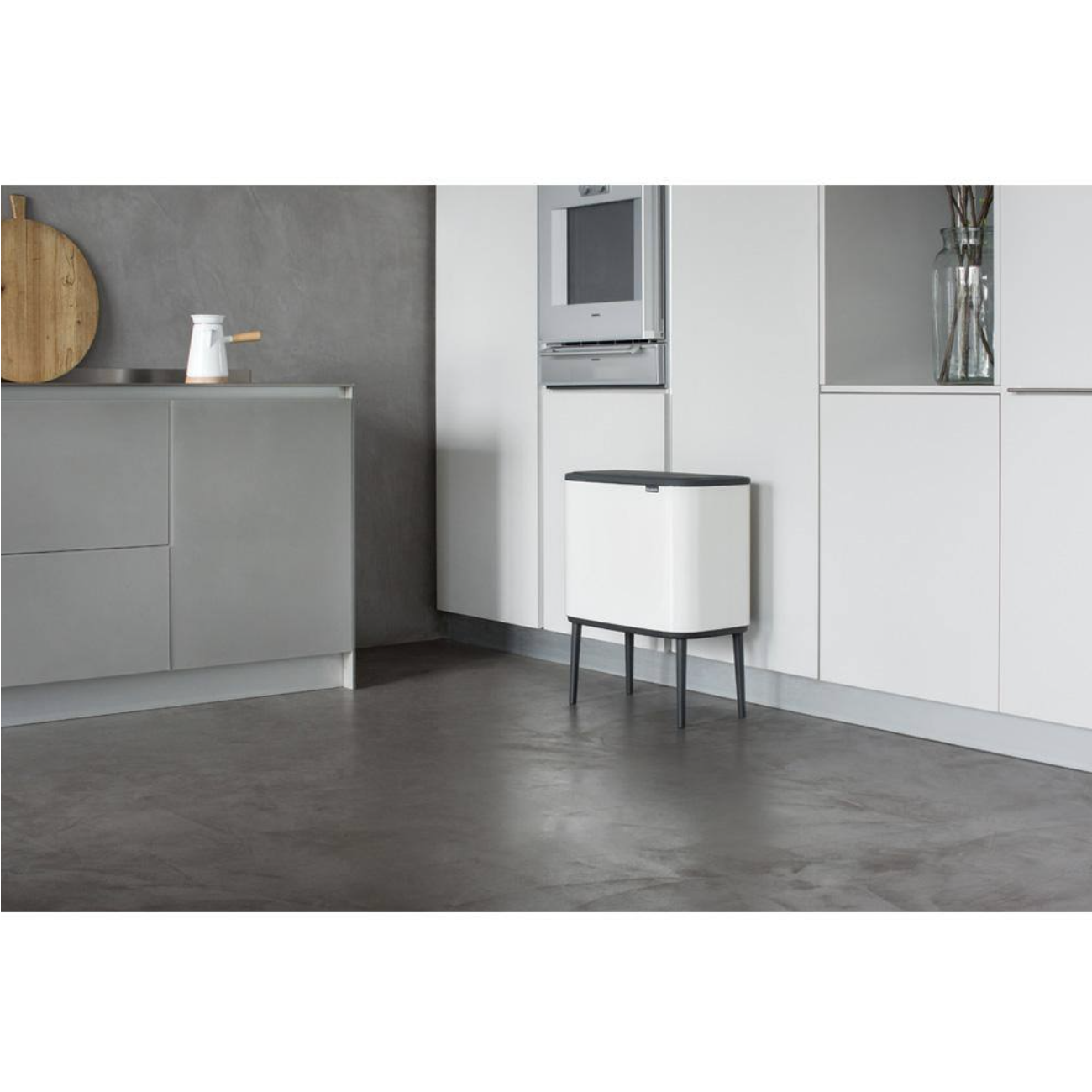 Brabantia Bo 9 Gallon Dual Compartment White Steel Rectangular Recycling Touch Top Trash Can