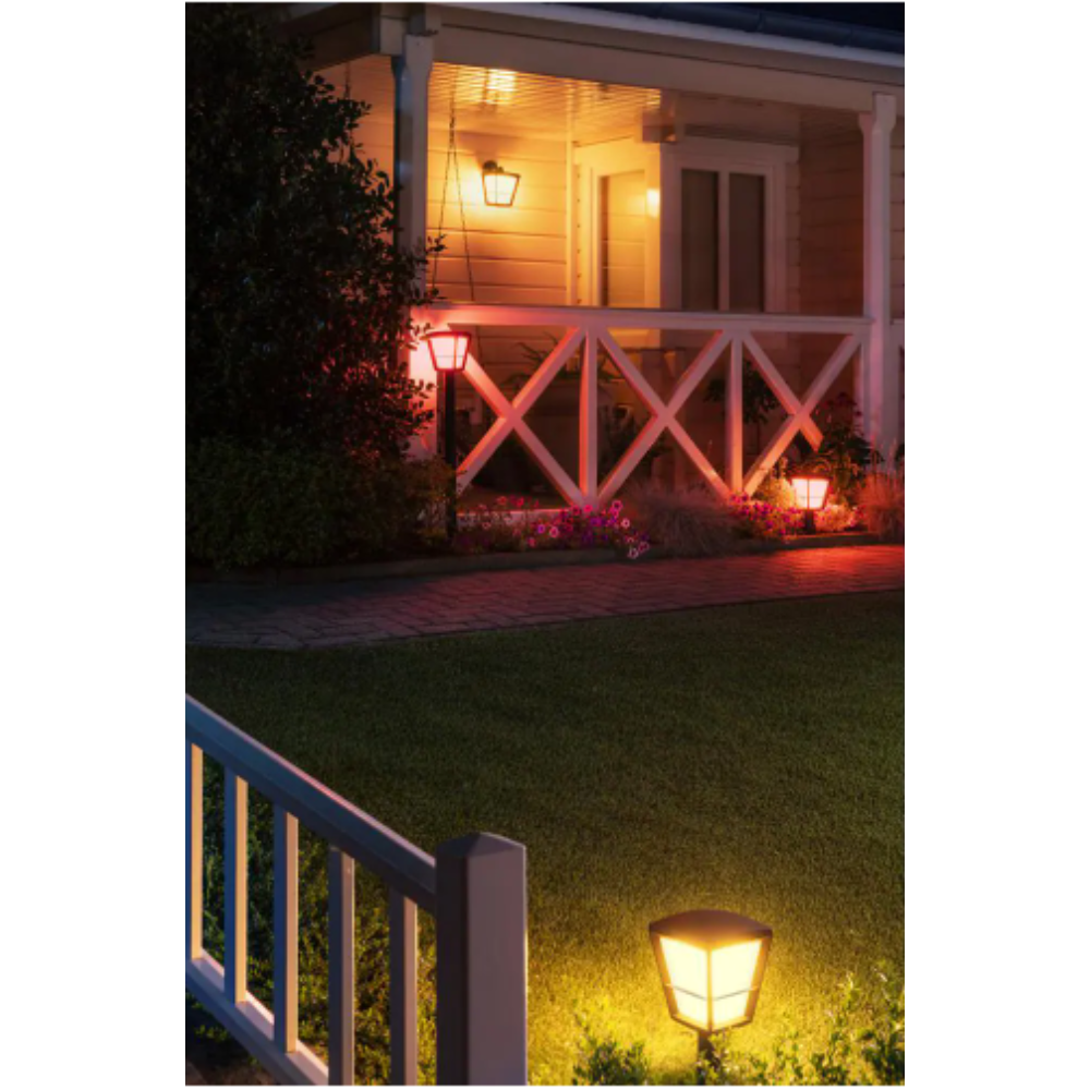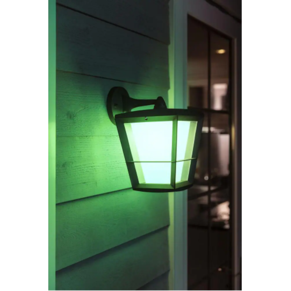 Philips Hue White and Color Ambiance Econic Medium Black Outdoor Wall Down Lantern with Integrated LED. Rectangle