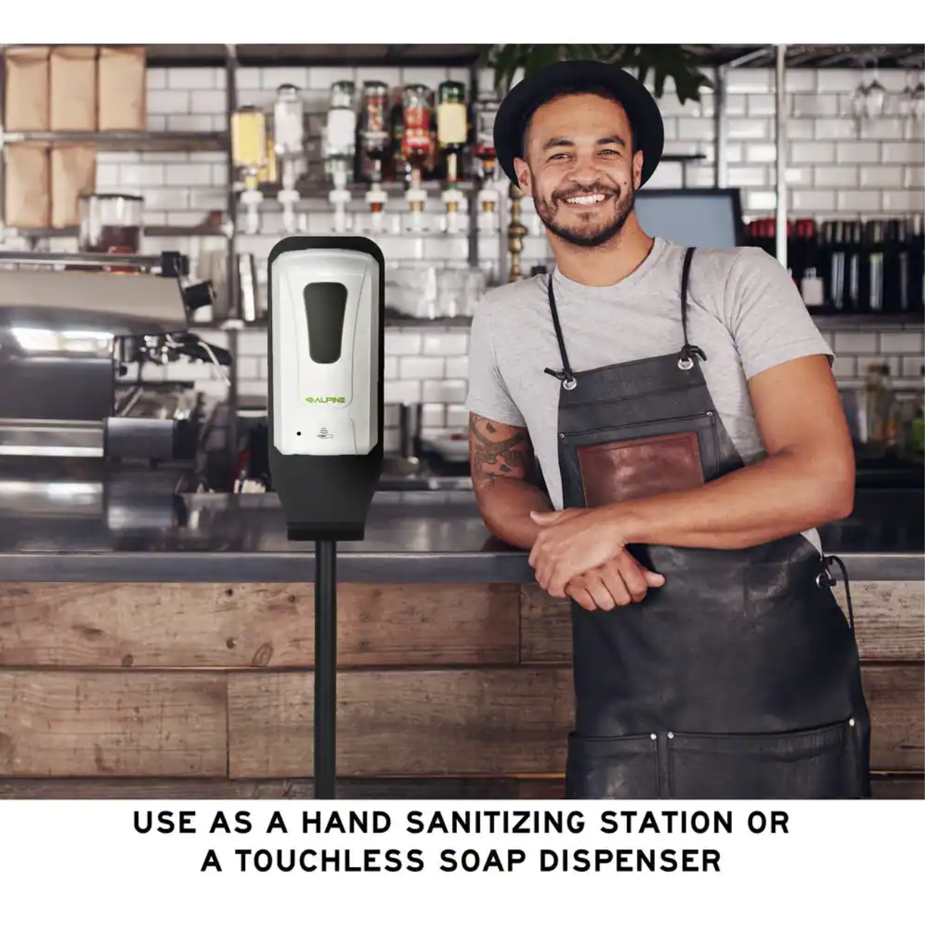 Alpine Industries 40 oz. Wall Mount Automatic Gel Hand Sanitizer Soap Dispenser in White with Floor Stand (2-Pack)