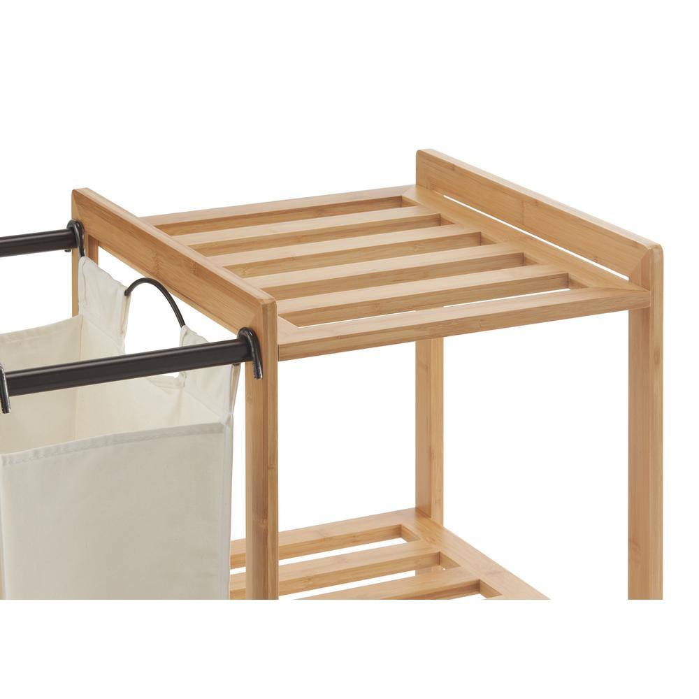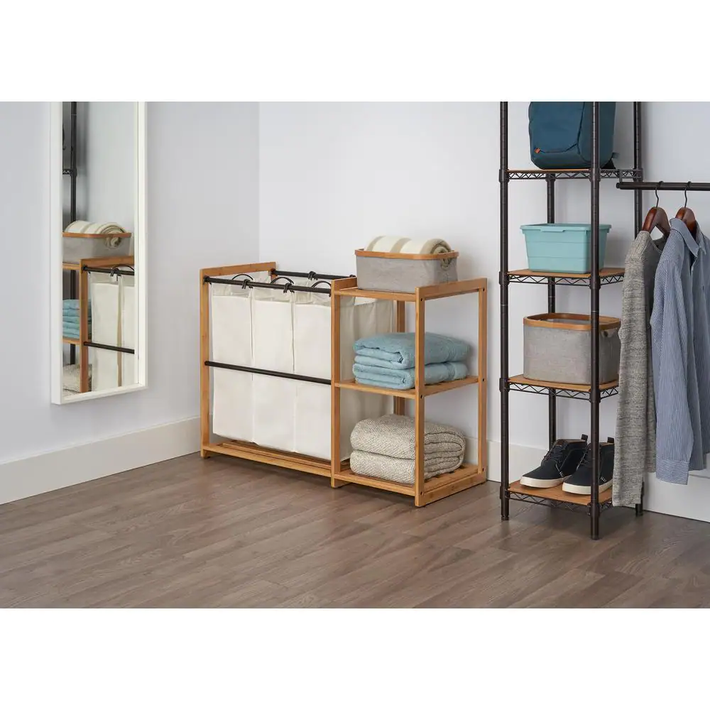 Trinity 3-Bag Bamboo Laundry Station with Bronze Poles